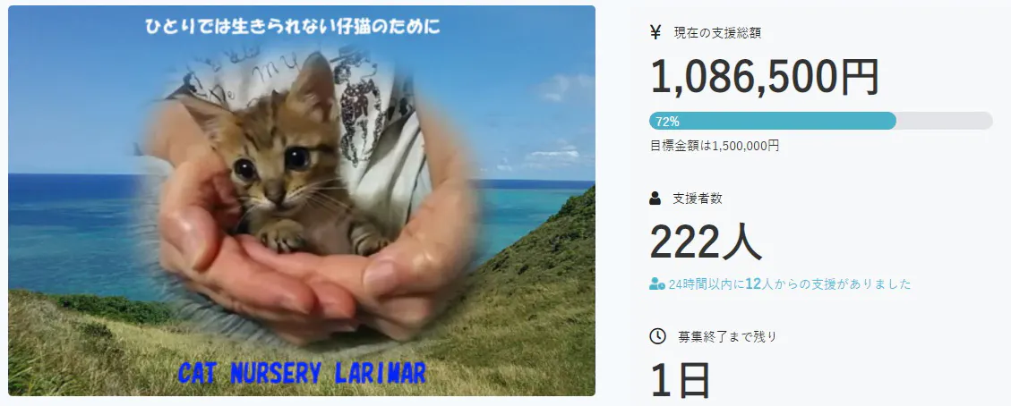2021/01/03 23:59:59までに集まった金額がファンディングされます。