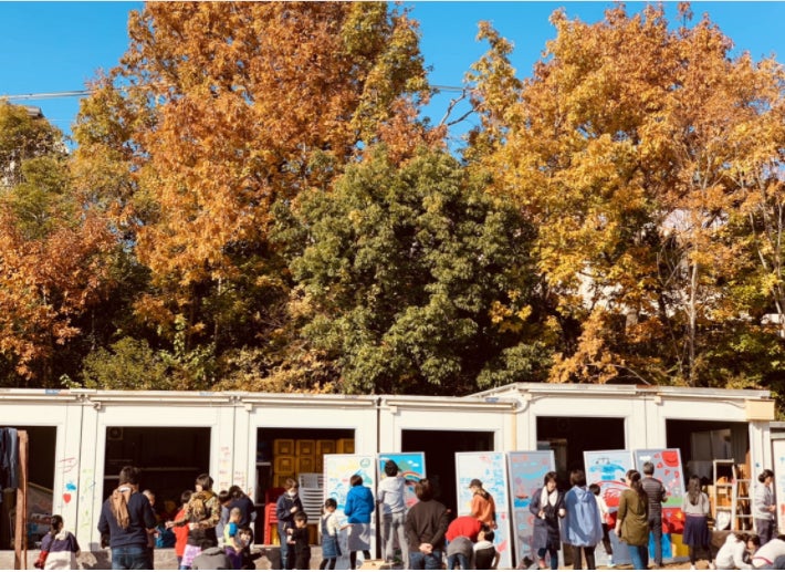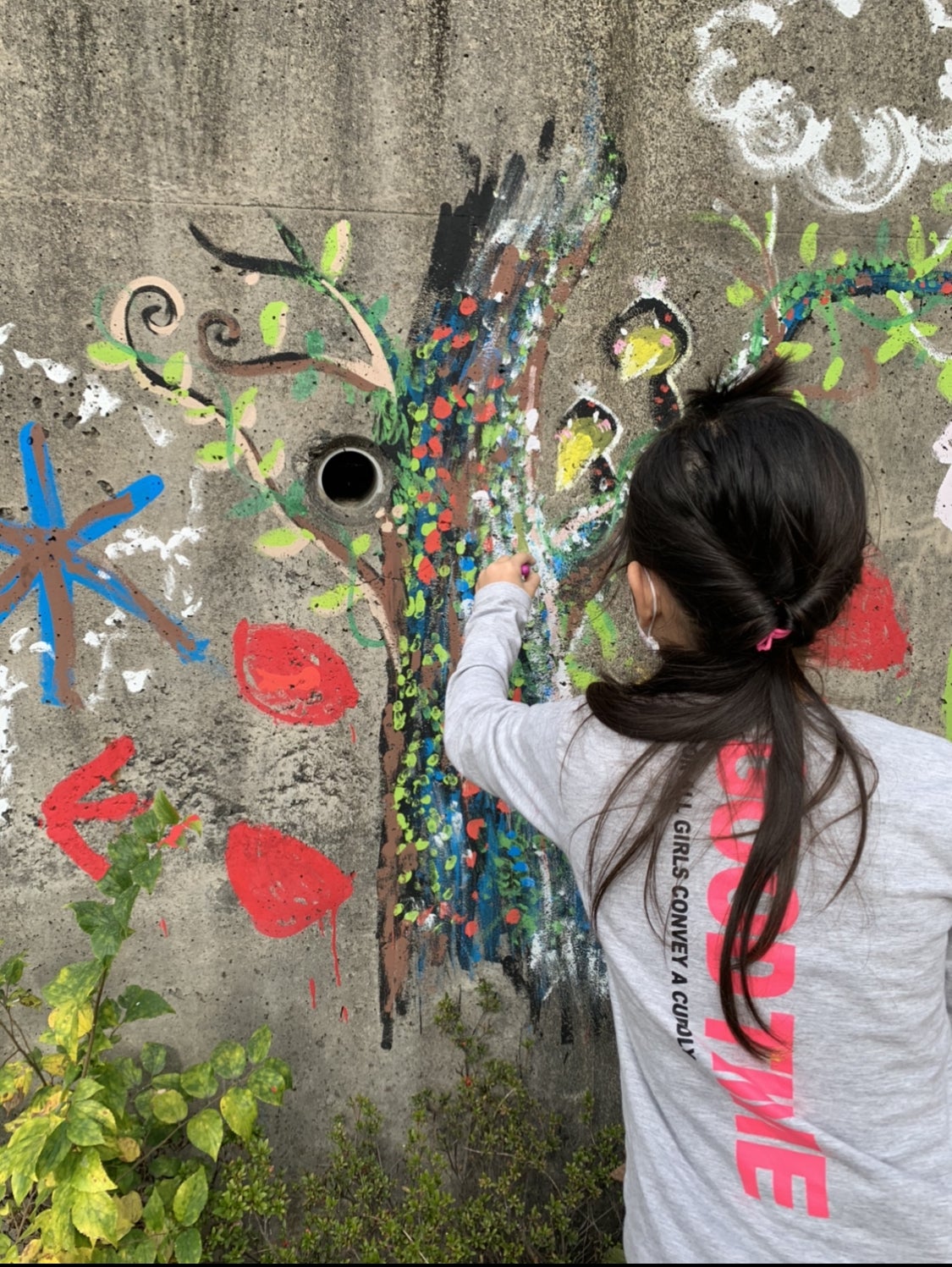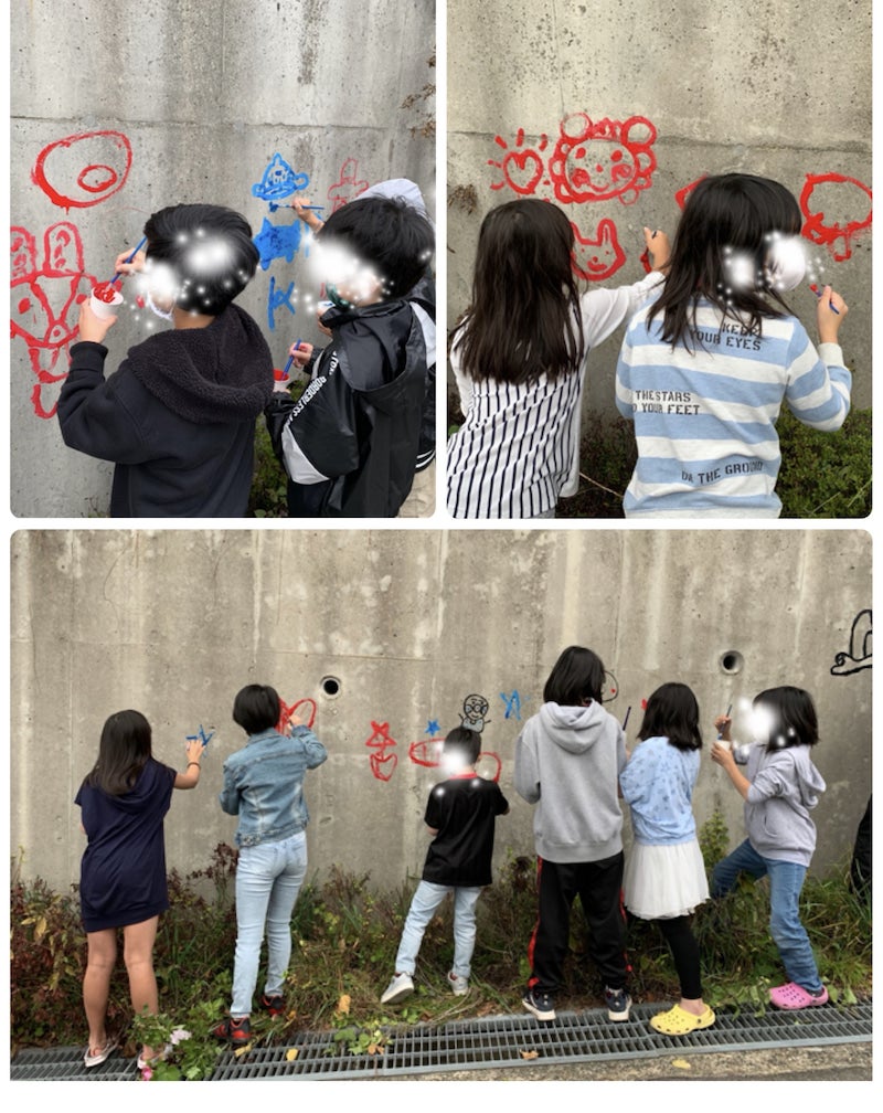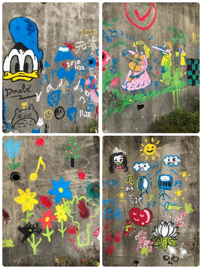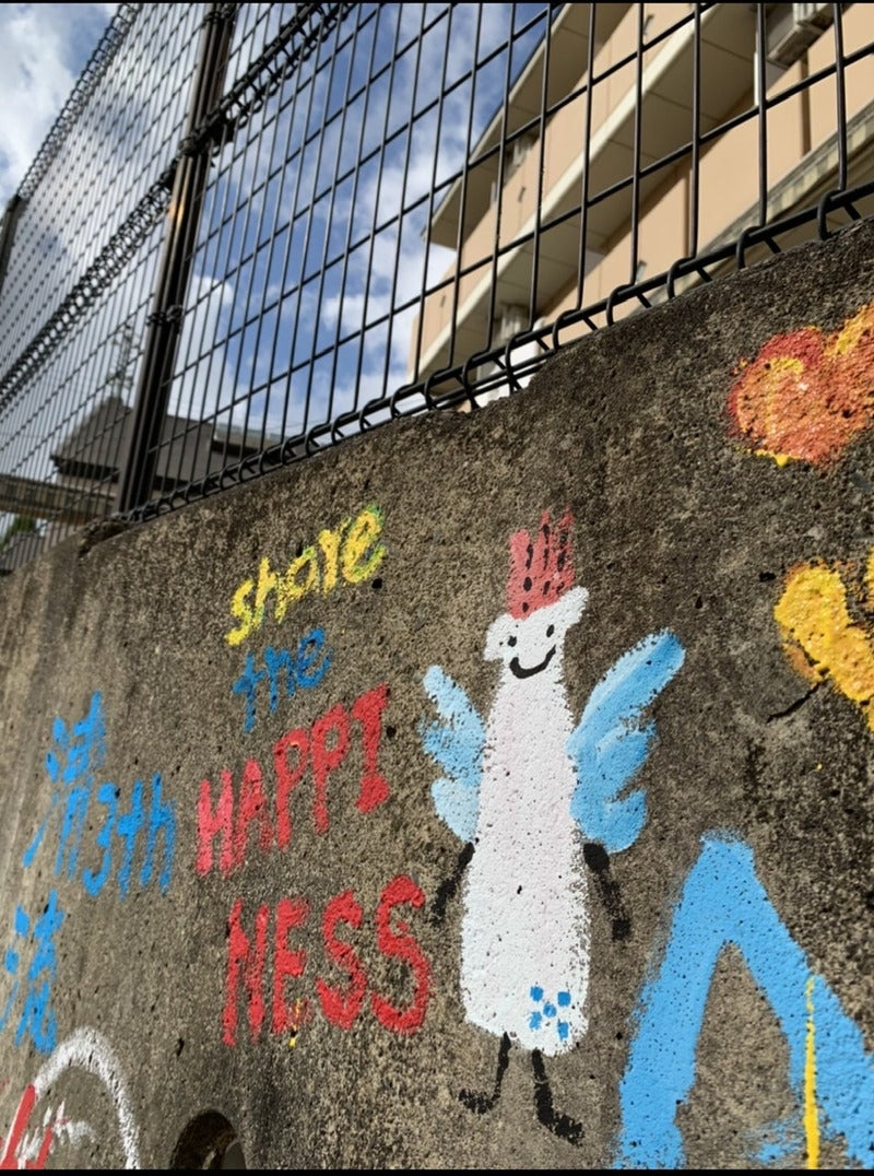 色とりどりの壁画は子どもたちだけではなく、付近の皆さんの心にもよろこびを届けてくれました。