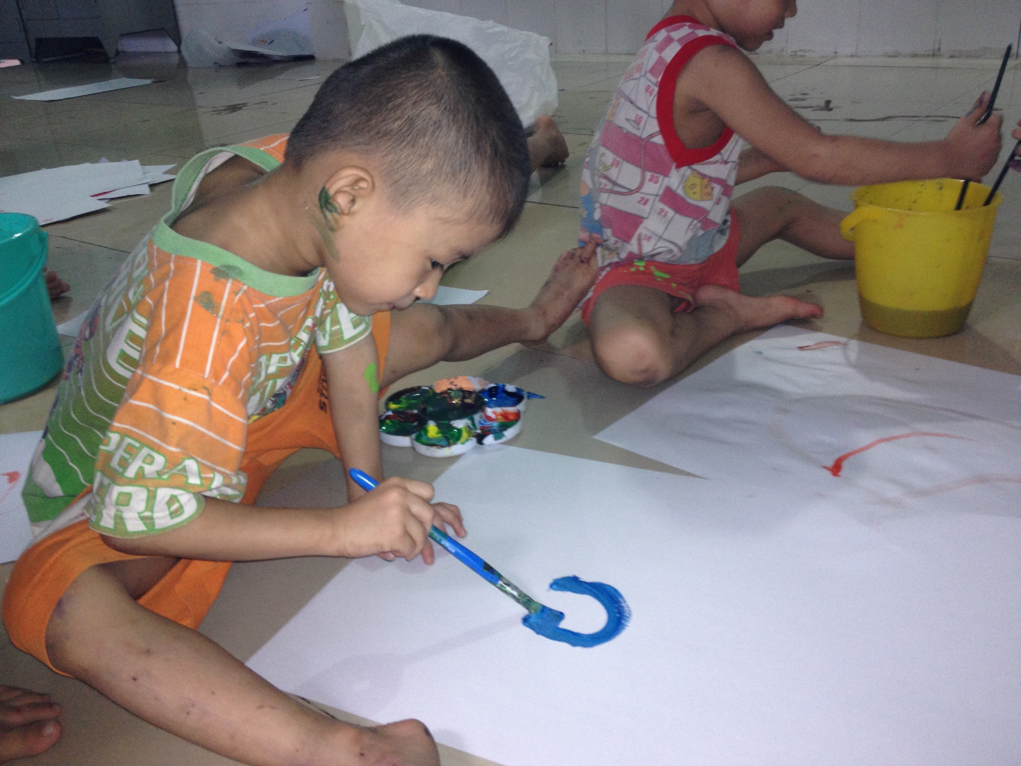 2015.04 ラオス『障がい児童施設』にて絵画ワークショップ