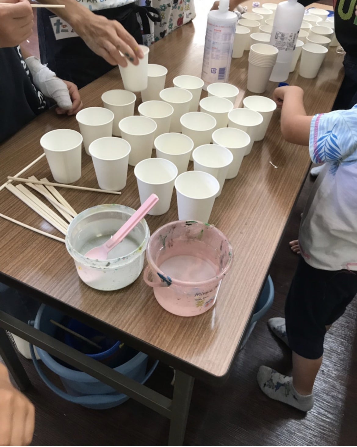思う存分楽しんでもらうため、様々な種類とたくさんの量の画材を揃えたい。