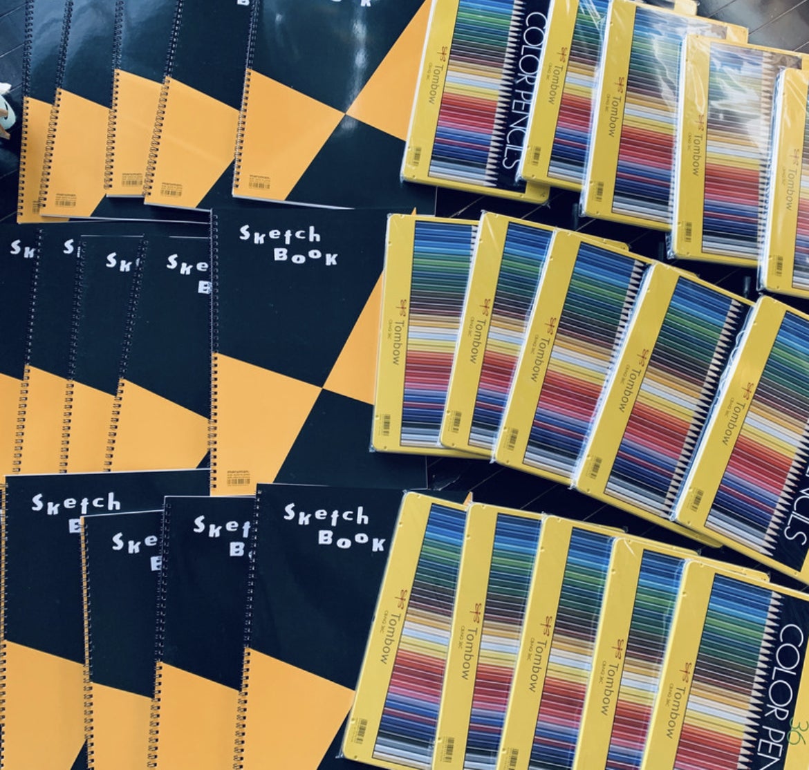 ③ 子どもたちへの画材セットプレゼント代(スケッチブック・36色色鉛筆・手提げ袋)
