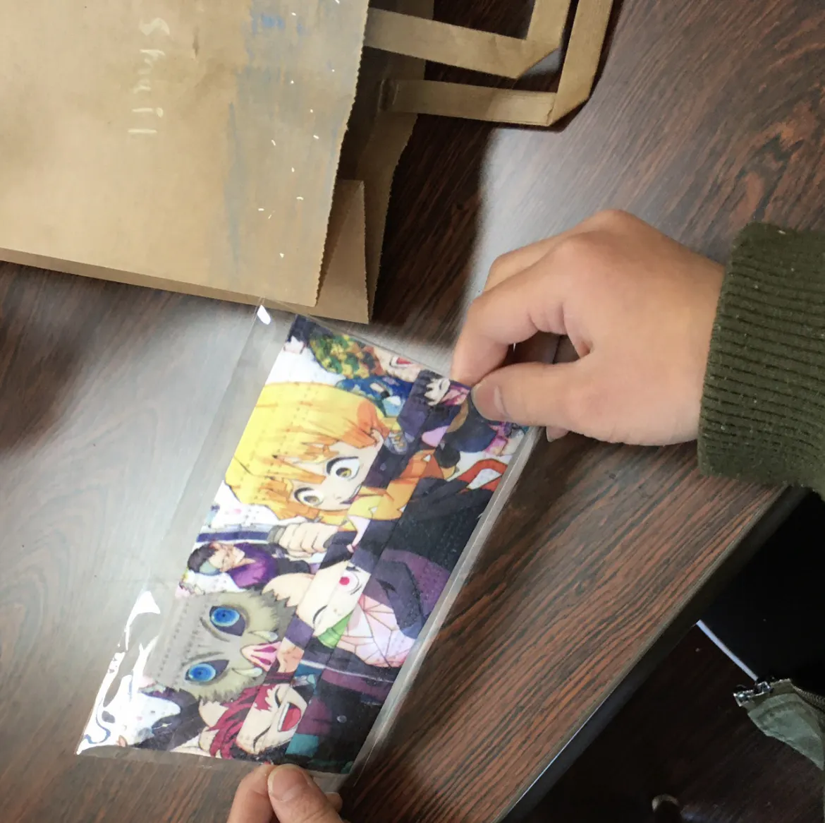 紙のバッグに鬼滅の刃のキャラクターを描いて、