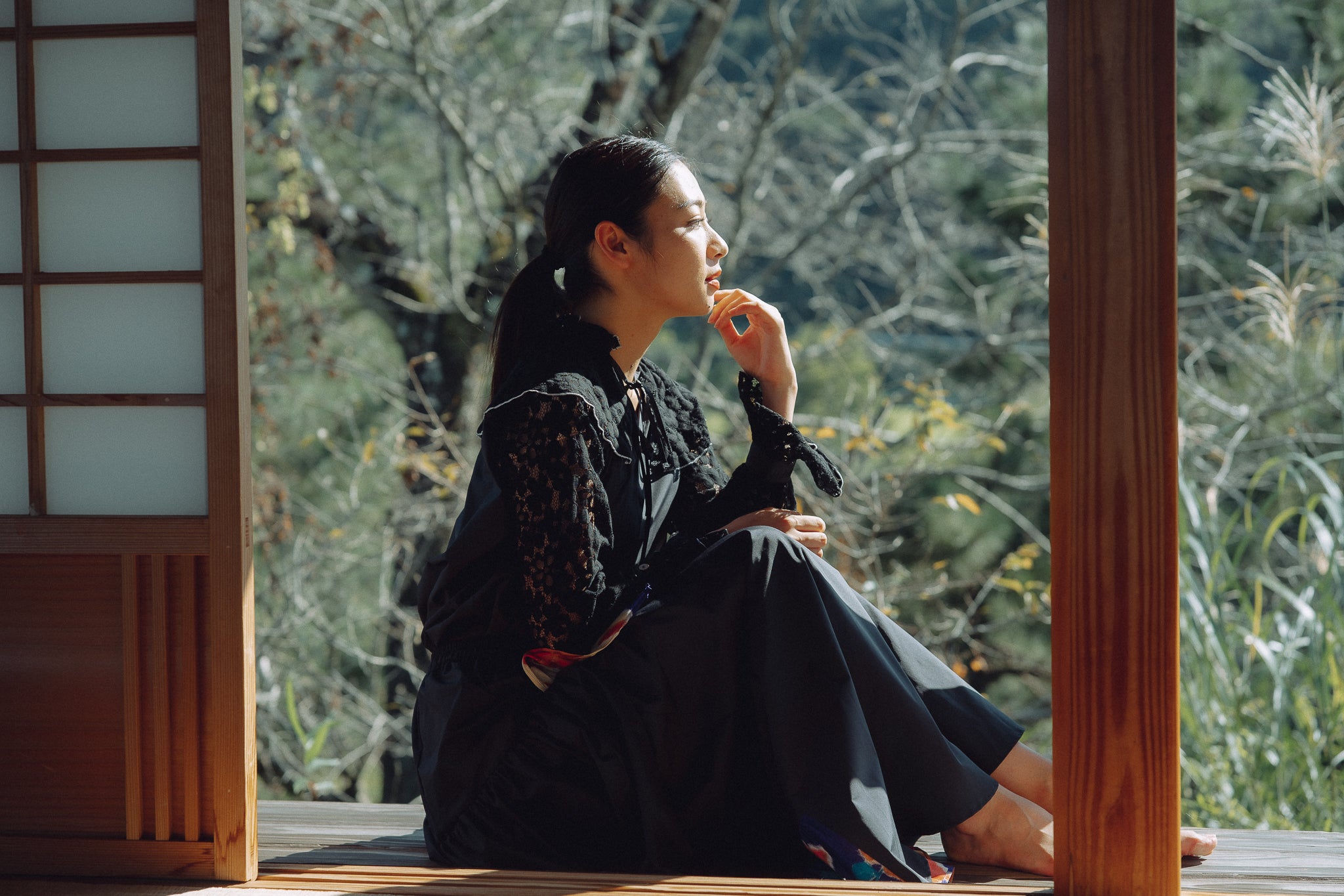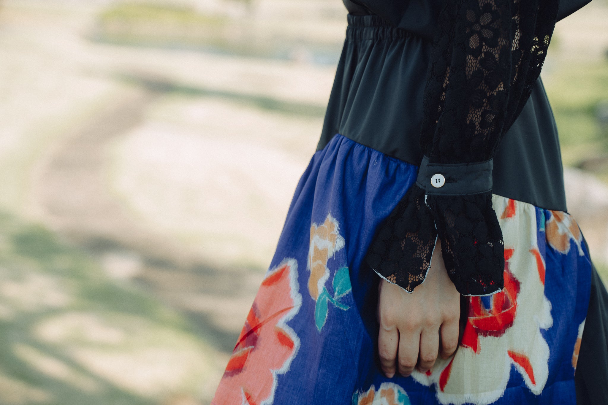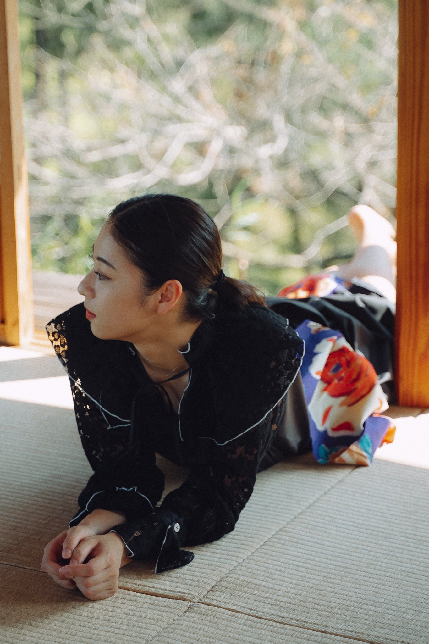 レーストップスと同素材を使用した銘仙スカート(10月中旬〜発売予定)と合わせてコーディネートをお楽しみください。