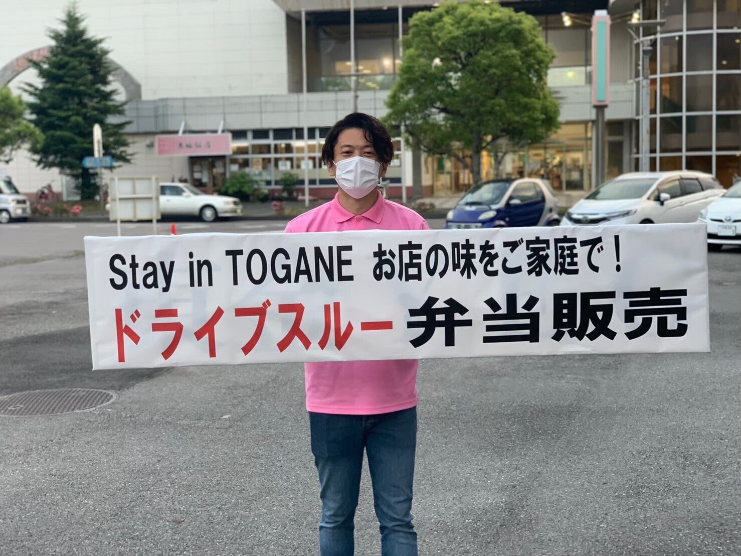 新型コロナウイルスによる緊急事態宣言下における飲食店支援のため、東金商工会館の駐車場を会場として、お弁当のドライブスルー販売を行いました(令和2年5月)。