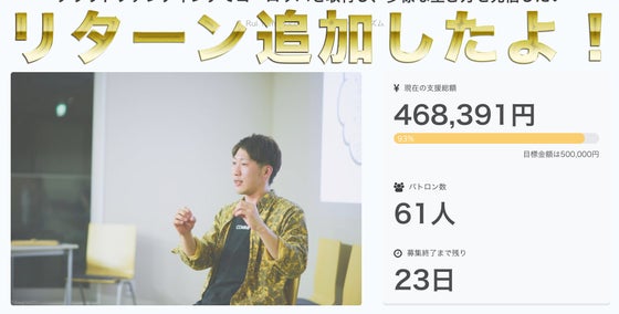 クラウドファンディングのリターン追加!講演会までの活動を支援してくれるスポンサー募集