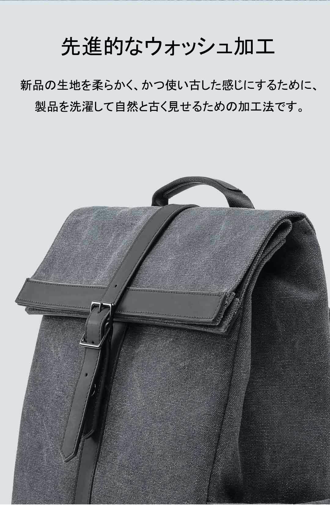フロントポケットにはモバイルバッテリーなどの小物を収納するのに便利で、使用頻度の高いアイテムの収納におすすめす。また、ジッパー部分は一見してそこに開口部があるとは分からないようにデザインされているので安心です。