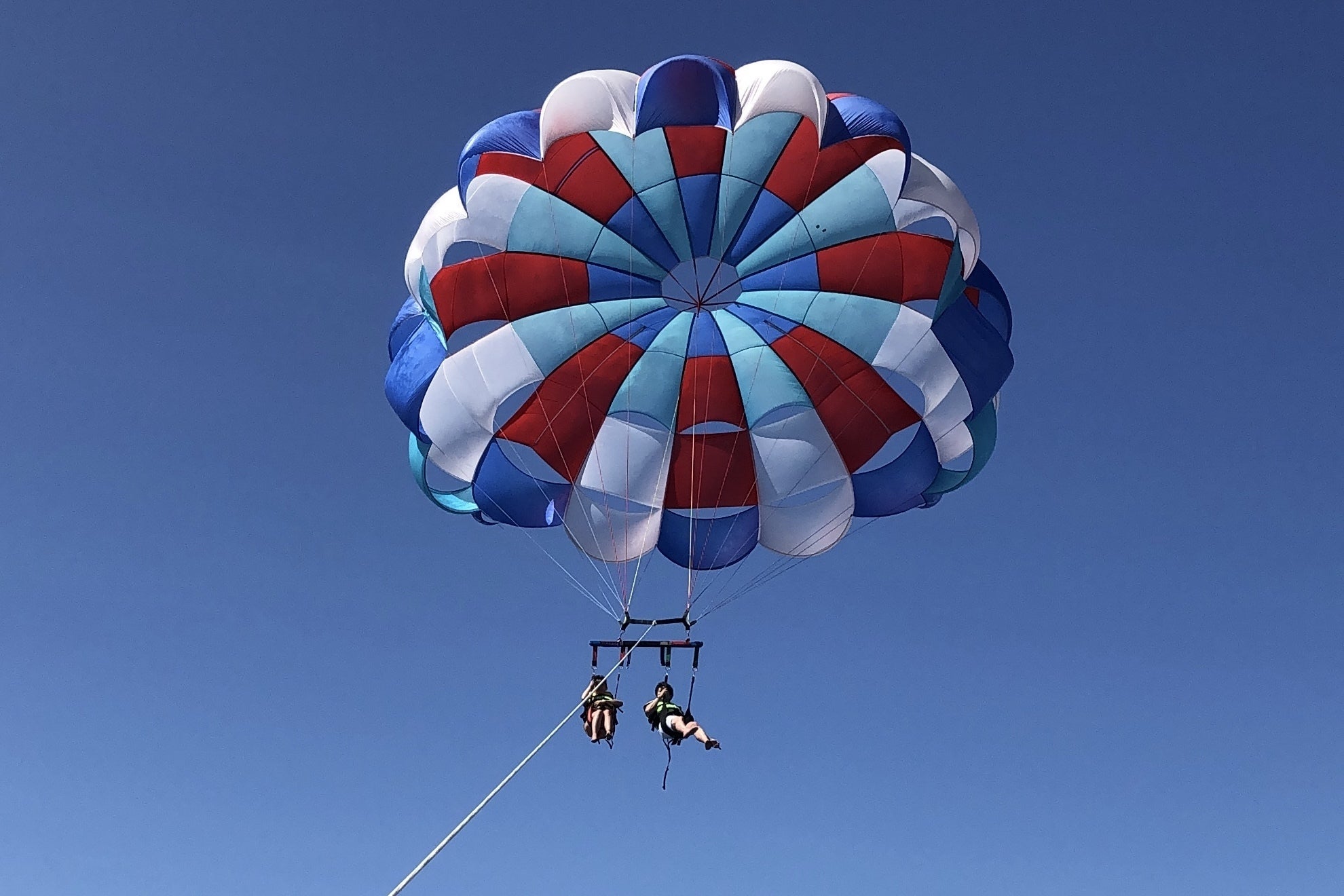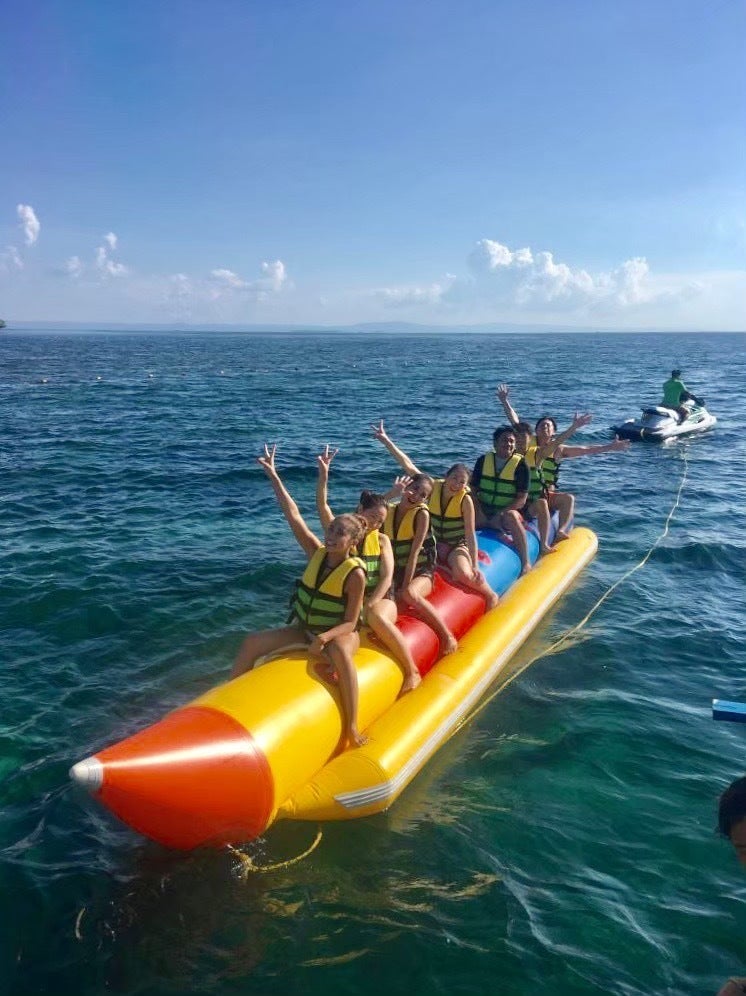 離島でのパラセイリング、ジェットスキー、バナナボートを堪能し