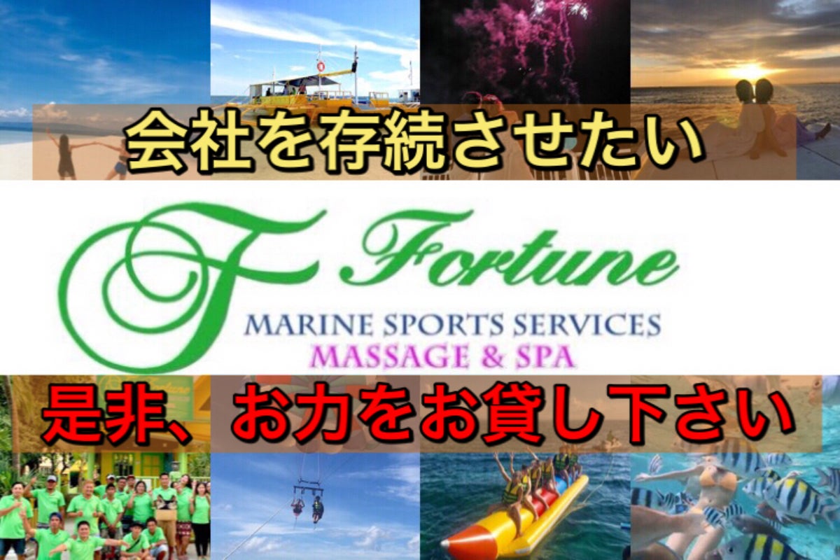 フォーチュンマリンスポーツサービスはオープンして2年を迎え、多くのお客様及び関係者の方々に支えて頂き会社を運営する事ができました。今回このような状況で店舗運営、現地フィリピン人スタッフの為になんとしてでも継続させたい。皆様のお力をお貸し頂きたいと思っております。