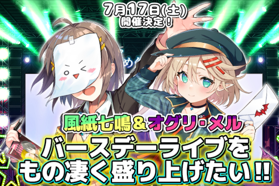 2021年7月、私たちのお誕生日を祝した「風紙七鳴&オグリ・メル Birthday LIVE」の開催が決定!!!