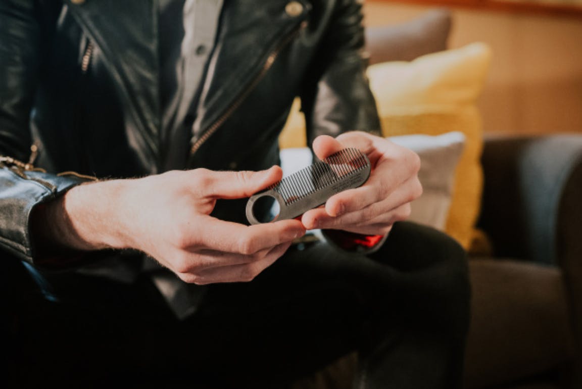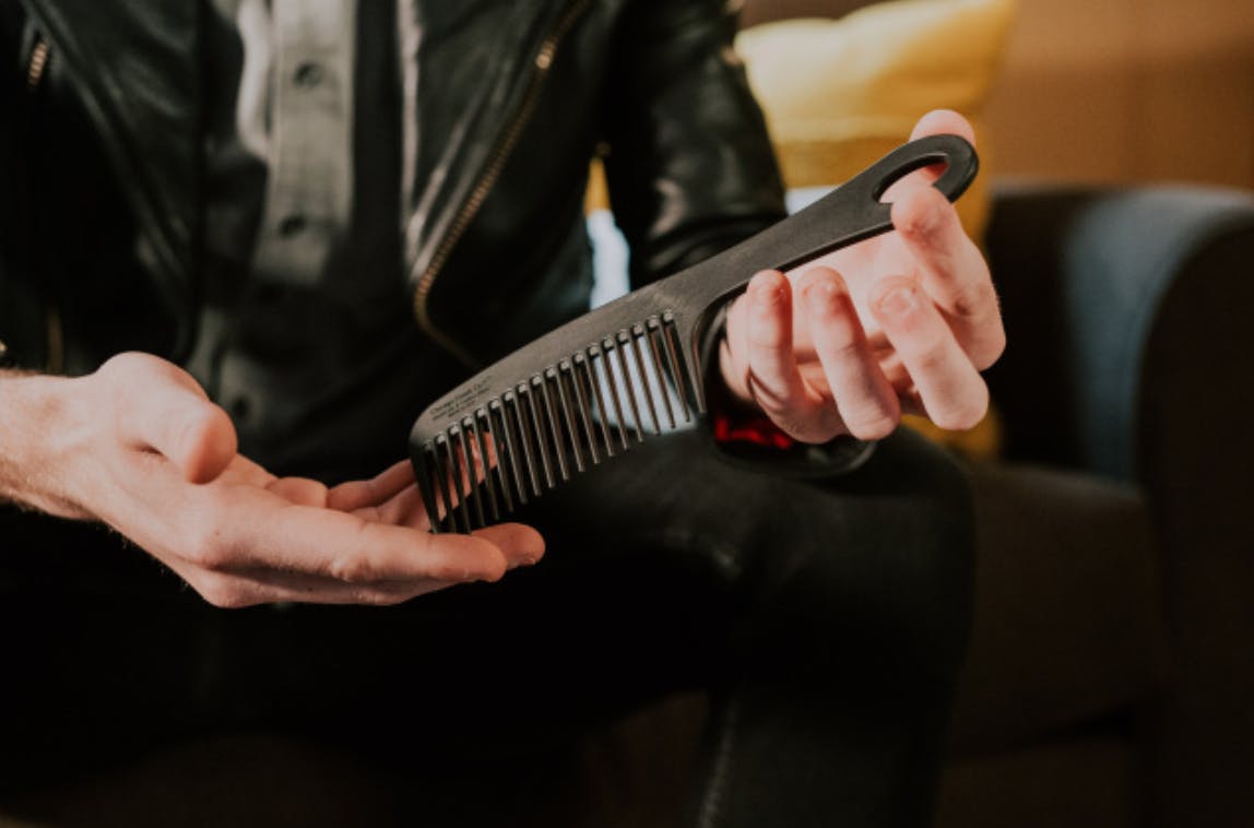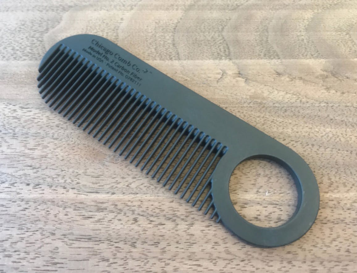 新しいモデルNo.2カーボンファイバーは、象徴的なポケット・トラベルコームであり、高い評価を得ているあごひげと口ひげのコームでもあります。特許取得済みの細かい歯のデザインには、櫛を握ったり、使用後に吊るしたりするためのループも端にあります。