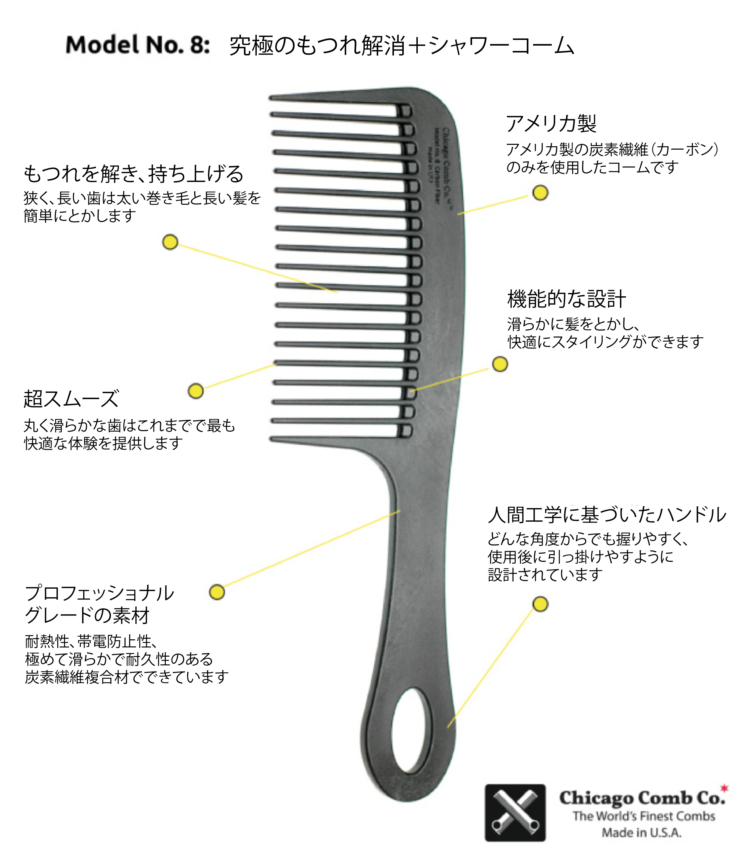 アメリカ・シカゴで製造された高性能の櫛