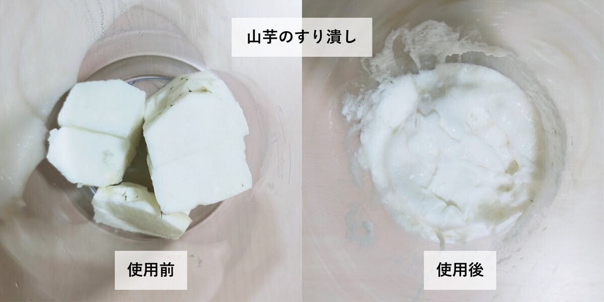 玉ねぎ、カボチャ、ジャガイモ等の野菜や果物のピューレやジュース、山芋のすりおろしも簡単です。