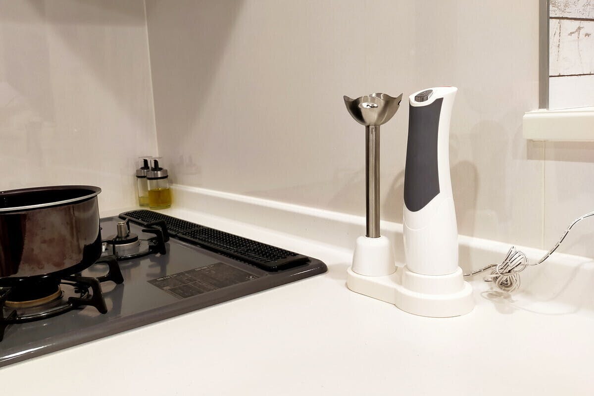 手軽で便利に活躍するハンドブレンダーですが、スペースの限られたキッチンでは電源を確保するのが大変です。延長コードをつないだり、使用中もコードが邪魔で使いづらいのが欠点。充電式コードレスタイプなら、場所を選ばず煩わしさもなく使えるので、お料理の自由度が広がります!