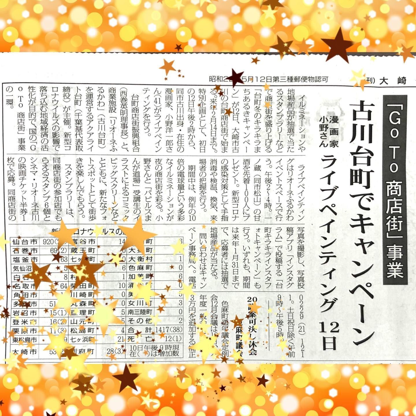 #ライブペインティング #小野洋一郎 #まんが #キャラクター誕生 #大崎タイムス記事20201212付 #冬のキラキラまちあるきキャンペーン #宮城 #大崎 #台町商店街 #次世代クリエイター応援