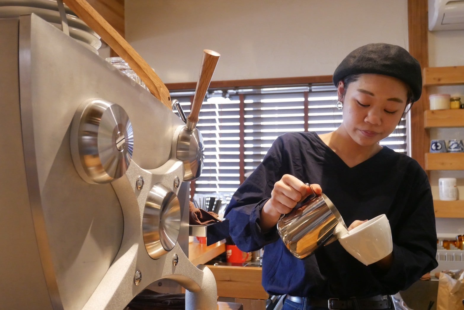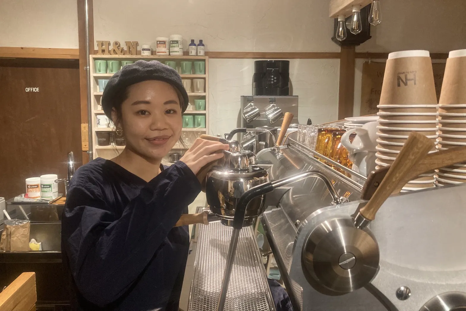 平野からエスプレッソマシン操作を学びにcafe HIRANAGAに弟子として来ていたスタッフの齋藤