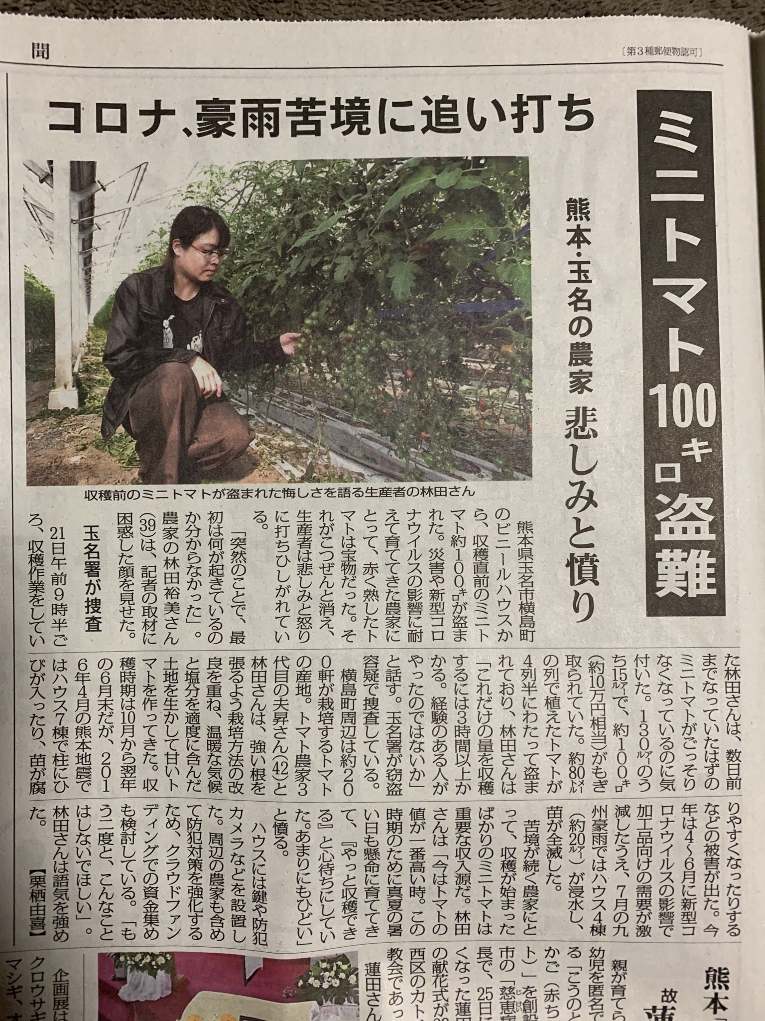 熊本地震や熊本水害(両方被害を受けました)のような自然災害であれば諦めもつきますが、これは人的犯行です。犯人は私たちからトマトだけではなく笑顔さえも泥棒したのです。