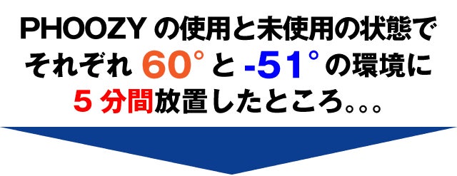 一方、摂氏-51℃の環境に5分おいたところ、PHOOZY XP3を使用していないiPhoneは表面温度-9℃まで下がりましたが、PHOOZY XP3を使用したiPhoneは表面温度23℃をキープ。