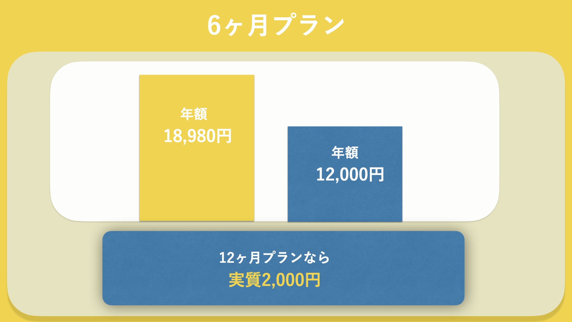 6ヶ月プランは月額でいうと、一番お得な値段になっています。