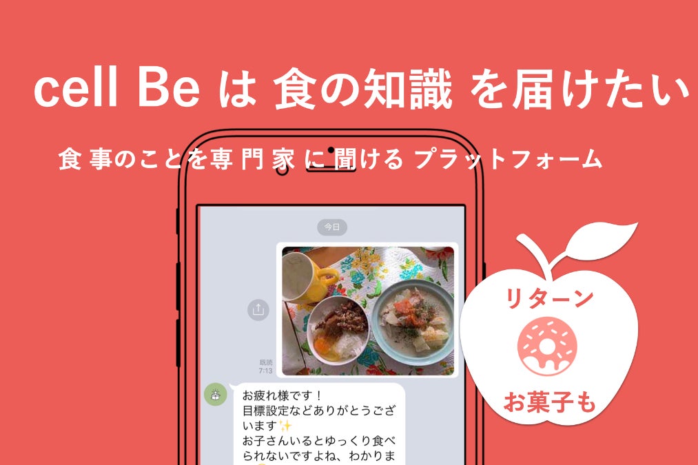 「cell Be (セルビー)」は、生活状況や食生活に合わせて、1人ひとりに応じた「食事アドバイス」をきっかけに食事を選択するサービス。