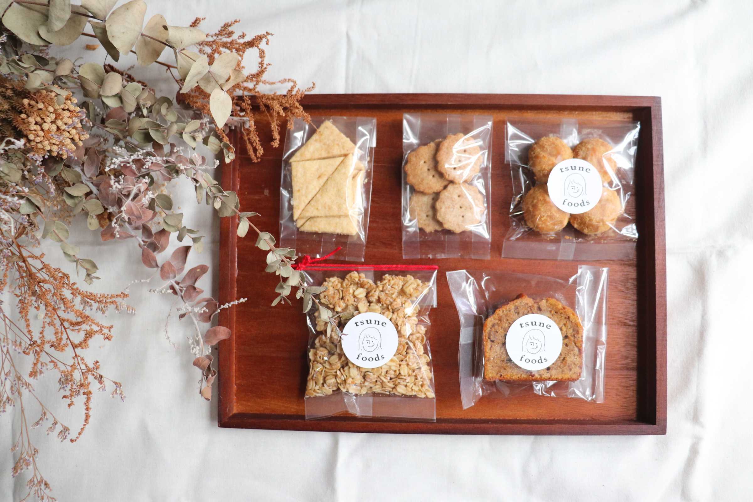 管理栄養士が作るおやつ屋tsunefoodsの「日常に寄り添った素材を味わうやさしいおやつ」をコンセプトにしたお菓子をお届けします!
