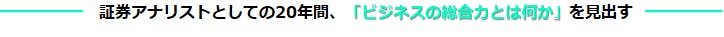 そして晴れてビジネススクールを卒業しMBAを取得した私は、証券アナリストとして約20年間にわたり、国内外の多くの企業の経営を見て参りました。その中で、業種や国の違いを超えて、企業や事業の発展には、「構想力・実行力・全体最適」の3要素が普遍的に重要と強く感じてきました。