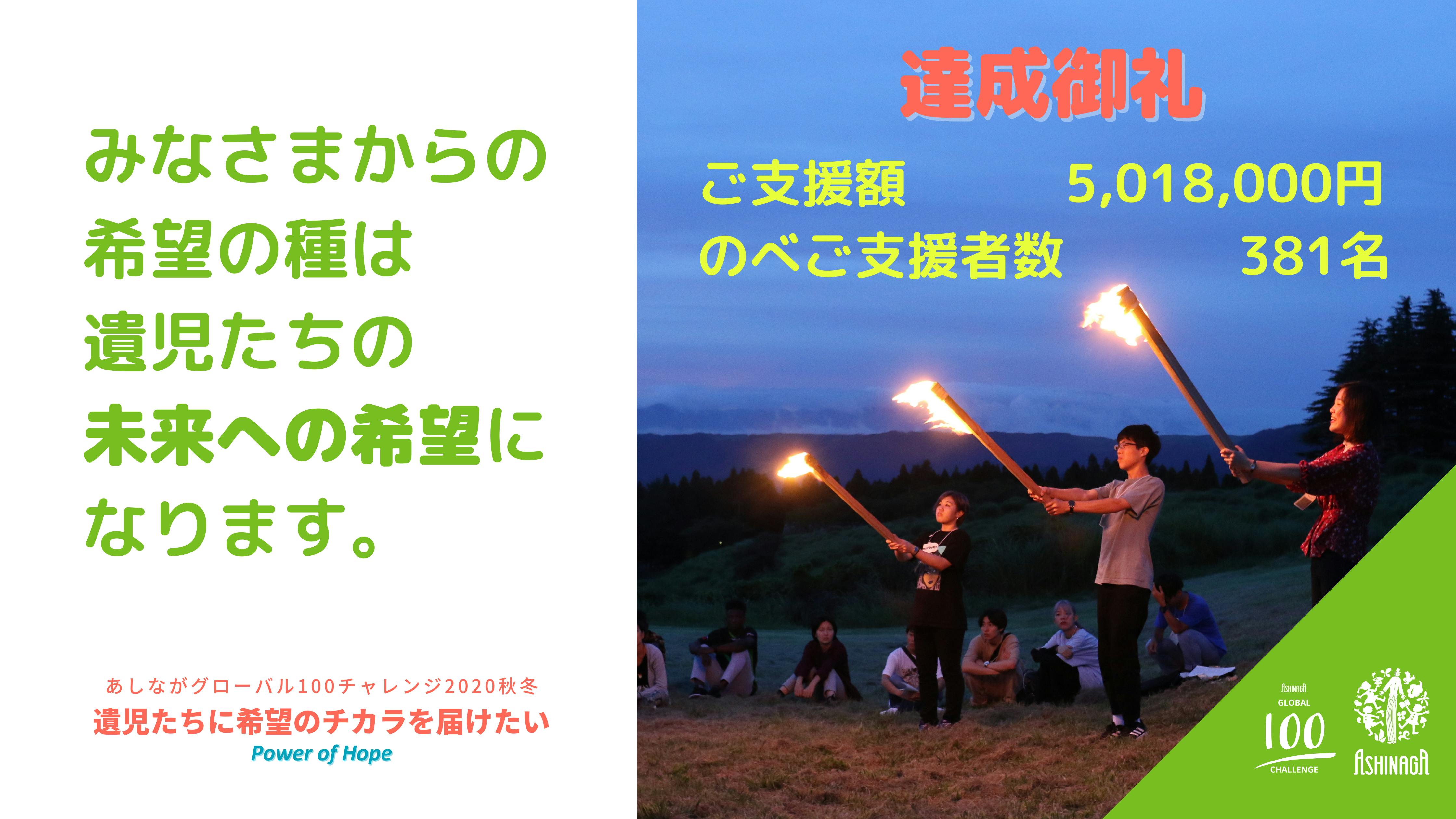 2021/01/19 20:30結果報告と御礼11月1日から80日間実施してきたクラウドファンディング・プロジェクト「Power of Hope:遺児たちに希望のチカラを届けたい」は18日23:59までに、381名の方から5,018,000円のご支援を賜り、目標達成とともに終了いたしました! 応援してくださいましたみなさまに、心より感謝申し上げます。 みなさまからお預かりしましたご支援金と応援の言葉は、遺児学生の奨学金や心のケアプログラムを始めとする遺児支援事業を通して、遺児たち、そして遺児家庭にお届けしてまいります。 本会のウェブサイト、公式SNS、機関紙「Newあしながファミリー」等で活動の様子や遺児と遺児家庭の声を紹介しておりますので、どうか今後ともご愛読ください。機関紙167号のデジタル版はこちらまた、オンライン募金キャンペーン「あしながグローバル100チャレンジ2020秋冬」は引き続き、2月8日まで実施中です。 1人でも多くの方に最後まで伴走していただけると励みになります! 〈今後の予定〉 ■ 1月20日(水) 19:00~20:30 (英語のみ) 無料ウェビナー「The Effects of COVID-19 on International Exchange」(講師:京都精華大学学長/あしなが賢人達人 ウスビ・サコ氏)詳細⇒https://fb.me/e/7n0BPtxho■あしなが学生募金クラウドファンディング 1/29終了プロジェクト 8件2/8終了プロジェクト 24件一覧⇒https://camp-fire.jp/goodmorning/channels/ashinaga一般財団法人あしなが育英会 担当:林 もっと見る