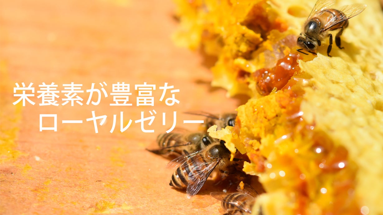ローヤルゼリーは、豊富なアミノ酸からなる良質なたんぱく質、ビタミンB1・B2・B6・ナイアシンや、パントテン酸などのビタミン類、カリウム・マグネシウム・カルシウム・銅・鉄・リンなどのミネラル類が含まれています。
