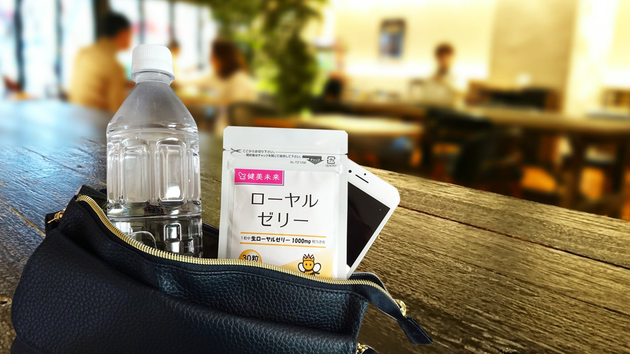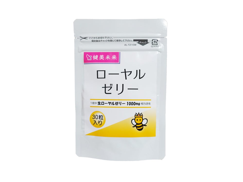 「ローヤルゼリー健美未来」は1日1粒でOK!手軽に持ち運べるサイズで、しかもチャック付きなので、とっても便利です。1粒中に生ローヤルゼリー1000mg相当含有!