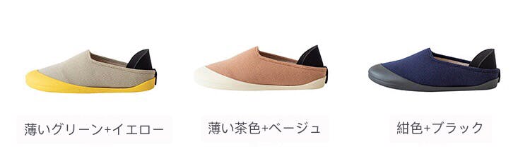 スリッパ部分は、薄いグリーン、薄い茶色(ラクダ色)、紺色の3種類があり、