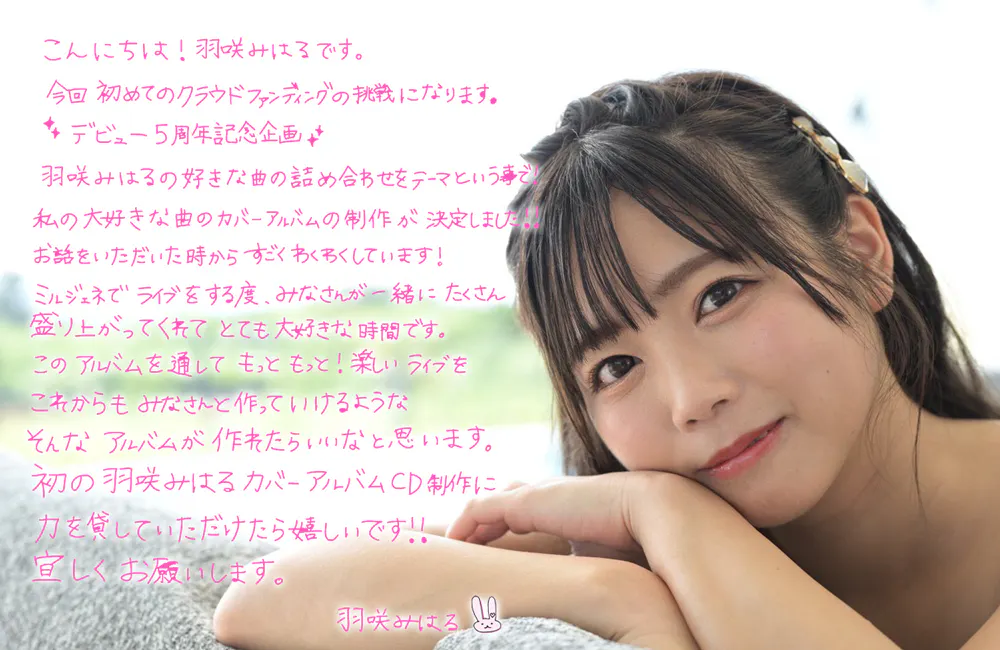 2021年にデビュー5周年を迎えるうさちゃんのこれまでと、これからを知るマストアイテムになるアイドルカバーCDを制作、発表したいと思いクラウドファンディングを利用させて頂く事にしました。