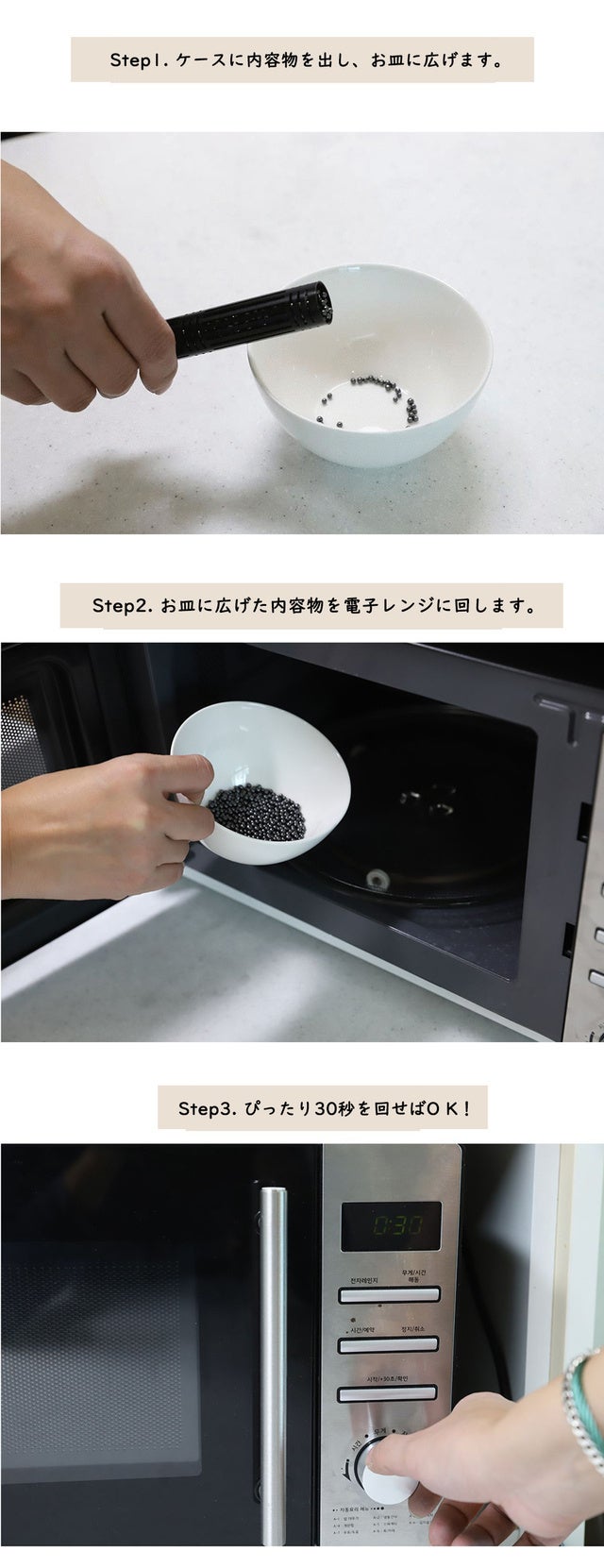 電子レンジで温めた活性炭はとても暑いので、冷ましてから使用してください。