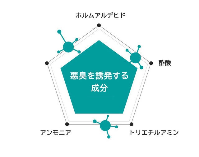 悪臭にはホルムアルデヒド、アンモニア、トリエチルアミンなど各種が隠れています。