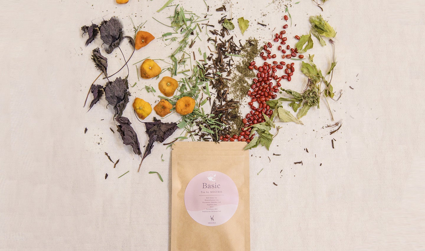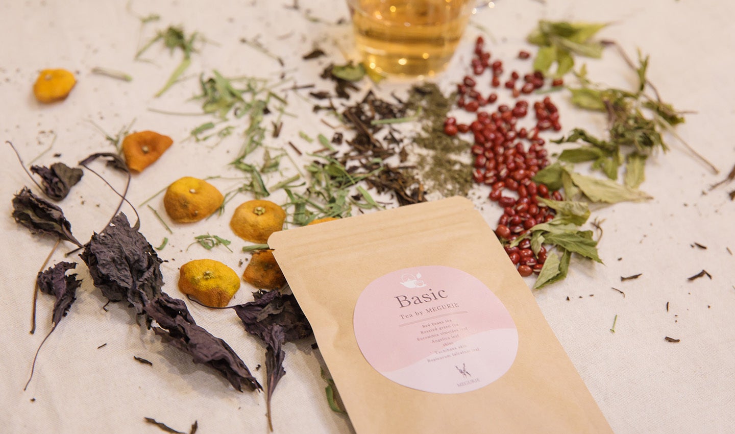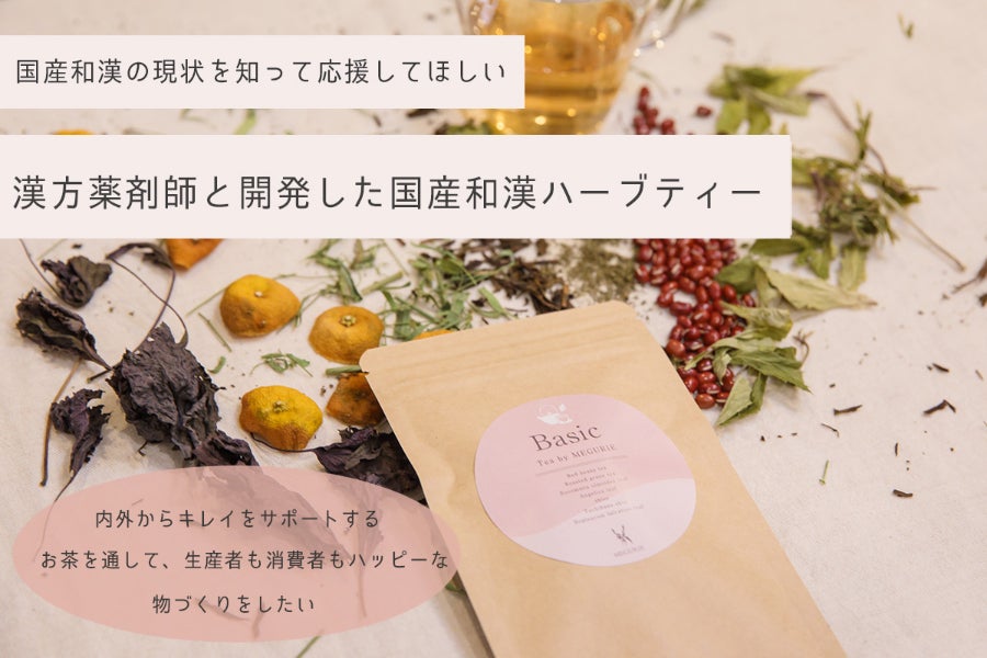 そんな想いから、漢方薬剤師さんの協力を得て、和漢ハーブティー「TEA by MEGURIE Basic」をつくりました。