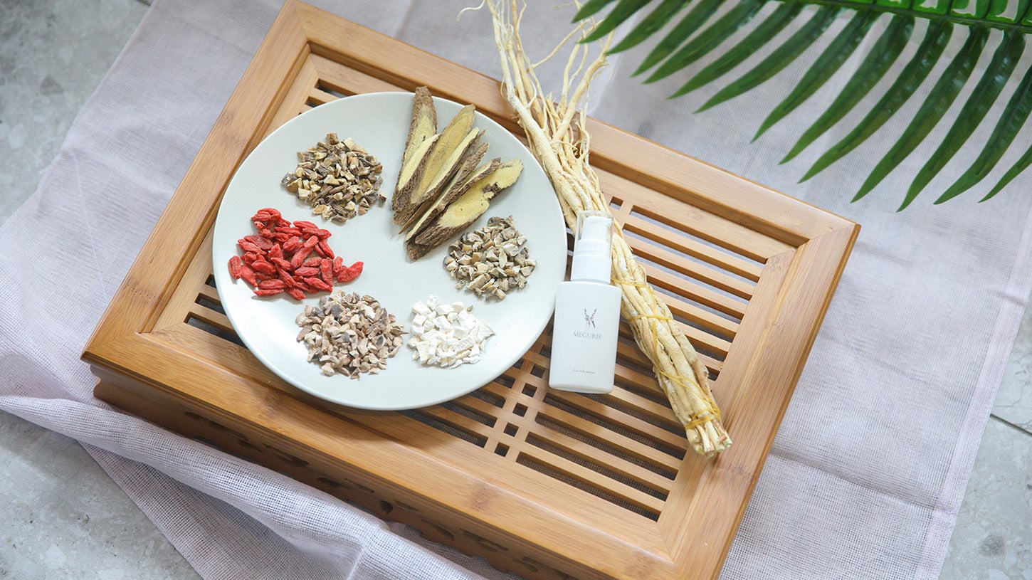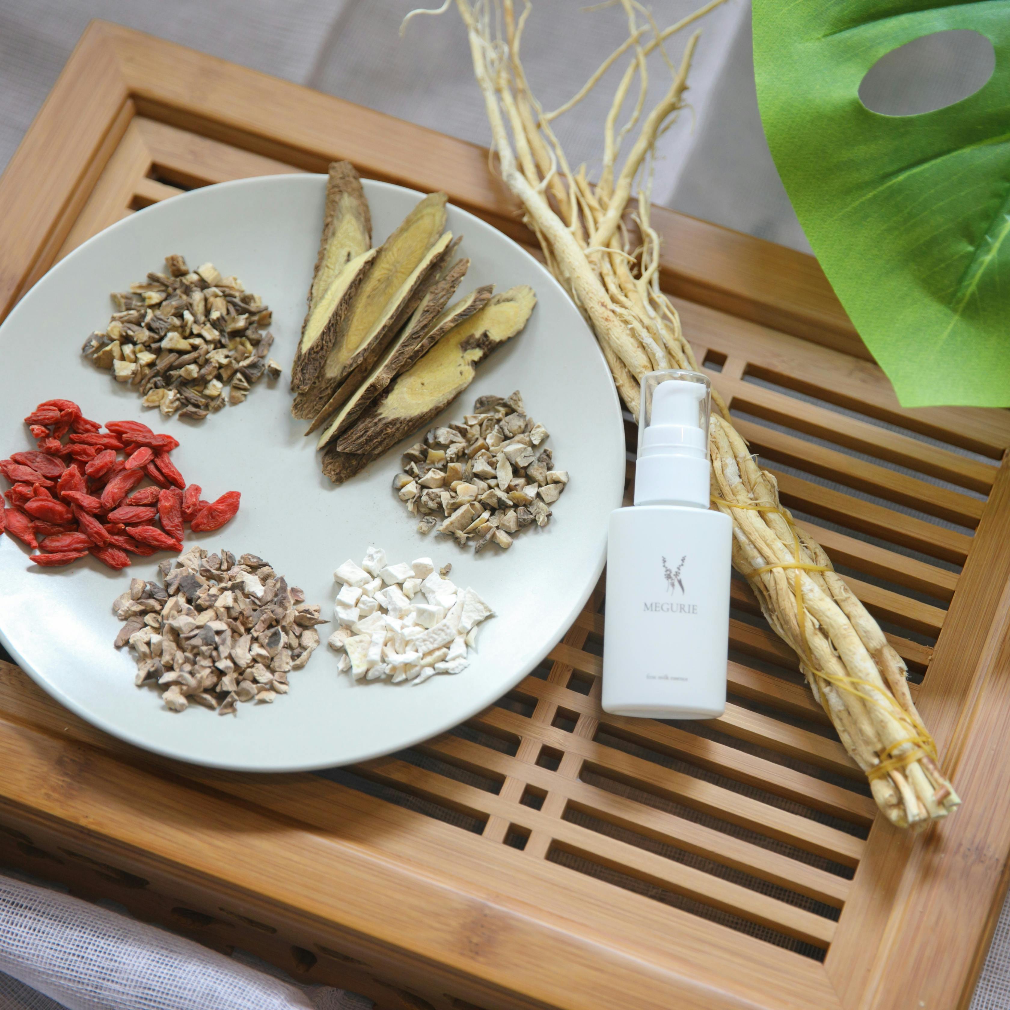 現在、MEGURIEでは配合している和漢の7種類のうち4種類を国産の和漢で製造し、そのうちトウキとサンヤクについては、一般社団法人日本薬用機能性植物推進機構の理事で千葉大学教授の渡辺先生の協力を得て、原料のエキス抽出から自社で行っています。今後は全ての原料を国産へ切り替えられるよう調整を進めています。