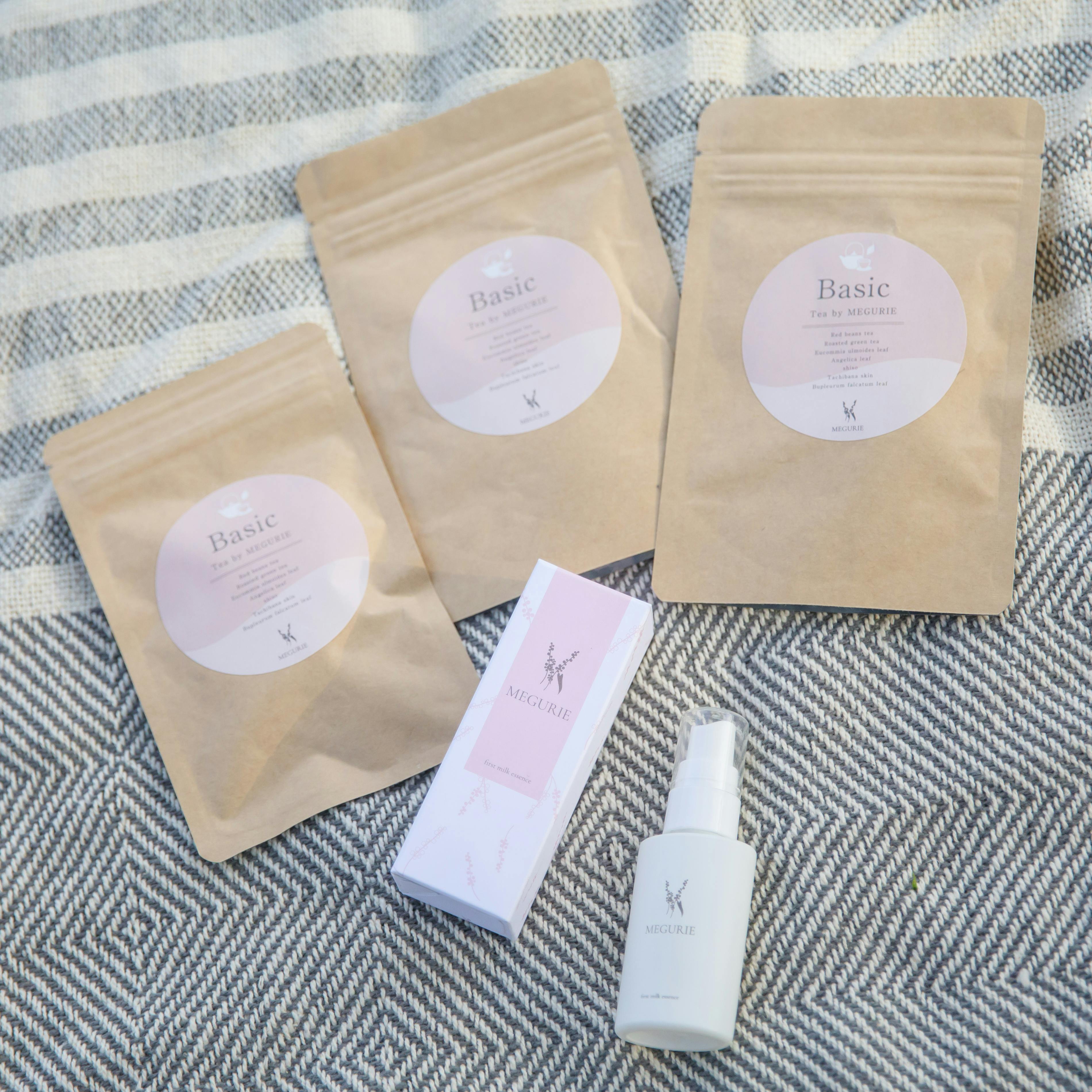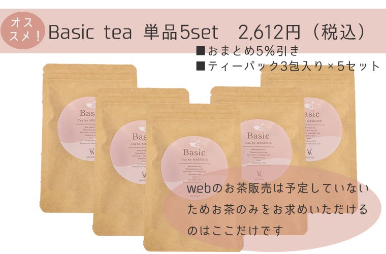 内外からキレイを目指す方へ化粧品とのセットと、お茶のみ化粧品のみのリターンを用意させていただきました。公式サイトでもファーストミルクエッセンス×Basic teaの限定セットを販売しておりますが、お茶単体のご購入が可能なのはオンラインではこちらのみです。