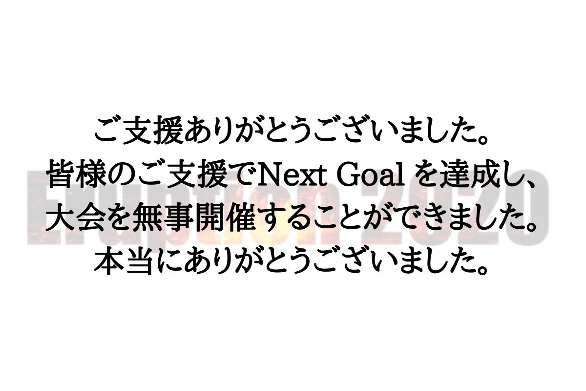 大会をご支援ご協力してくださった皆様本当にありがとうござました。クラウドファンディングにて、ご支援してくださった皆様への御礼をただいま準備している最中でございます。今しばらくお待ちください。