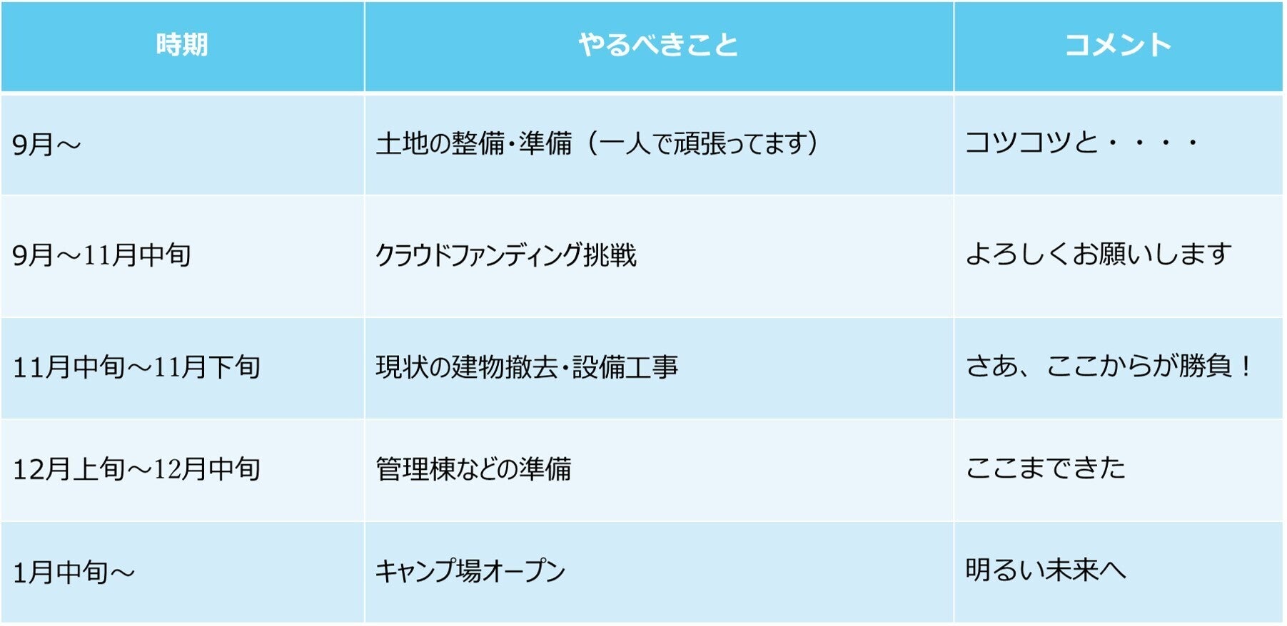 キャンプ場をオープンするためにはまだまだ準備が必要です。