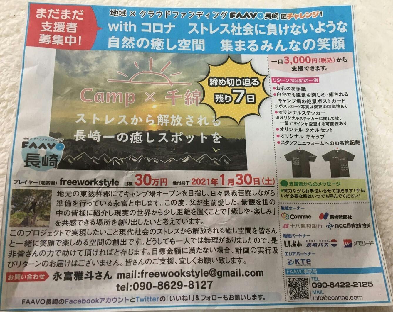 2021/01/24 13:37今日は朝から突然知らない番号から電話が・・・・。「キャンプ場の場所はどこですか?新聞をみたのですが・・・と」新聞?よくわからないまま場所を説明していくと、「〇〇ですけどわかるかな?」とすぐにわかりましたよ(^_-)-☆まだ私が初々しく若い時にお世話になったかたです。驚きました。新聞をみてたぶんそうかな?って電話したくださいました。ありがたいことです。いまは、ご自分で造園業を行われているようで「なにか手伝えることはないか?」ご連絡くださいました。早速、キャンプ場へ向かいいろいろ相談させてもらい協力いただけるようです。また、知らなかったですがキャンパーでもあるようで様々なアドバイスも頂き昨日に続き感謝・感謝です。クラウドファンディングではこういう出会いもあるのかあ~って感じる午前中の出来事でした!(^^)!感謝! もっと見る