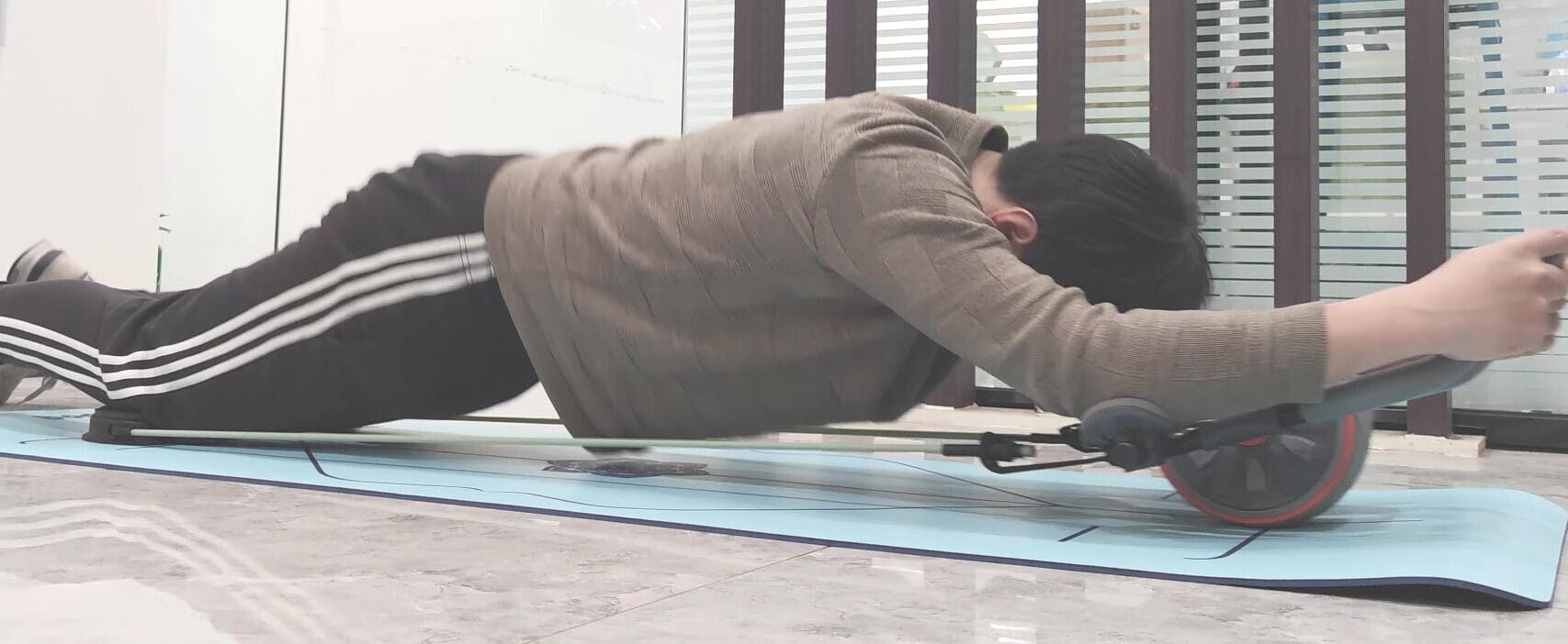 従来の腹筋ローラーのハンドルのグリップは握力をかなり必要とし、握力の弱い人や手の小さい人のローリング運動を難しくしていました。 腕力でハンドルと体を支える為、腕、肘や腰へ負荷が強く、握力が弱いと引き寄せるのが難しく途中で姿勢が崩れて継続できなかったり、ホイールが細くて安定性に欠けてバランスが悪く余計な力が入り力んでしまいます。