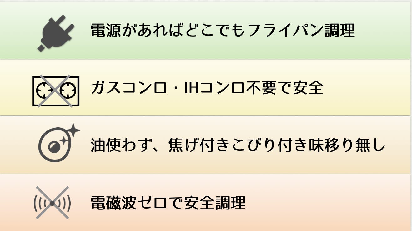 abien MAGIC PANは特殊な超薄型ヒーターを搭載する事でフライパンにヒーターを一体化する事に成功しました。