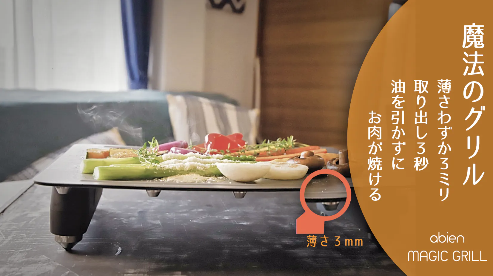 本商品のシリーズとして魔法のホットプレート【abien MAGIC GRILL】を開発し支援をし約2000万円のご支援を頂きました。本商品は引き続きキャンプファイヤー様で支援募集しております。