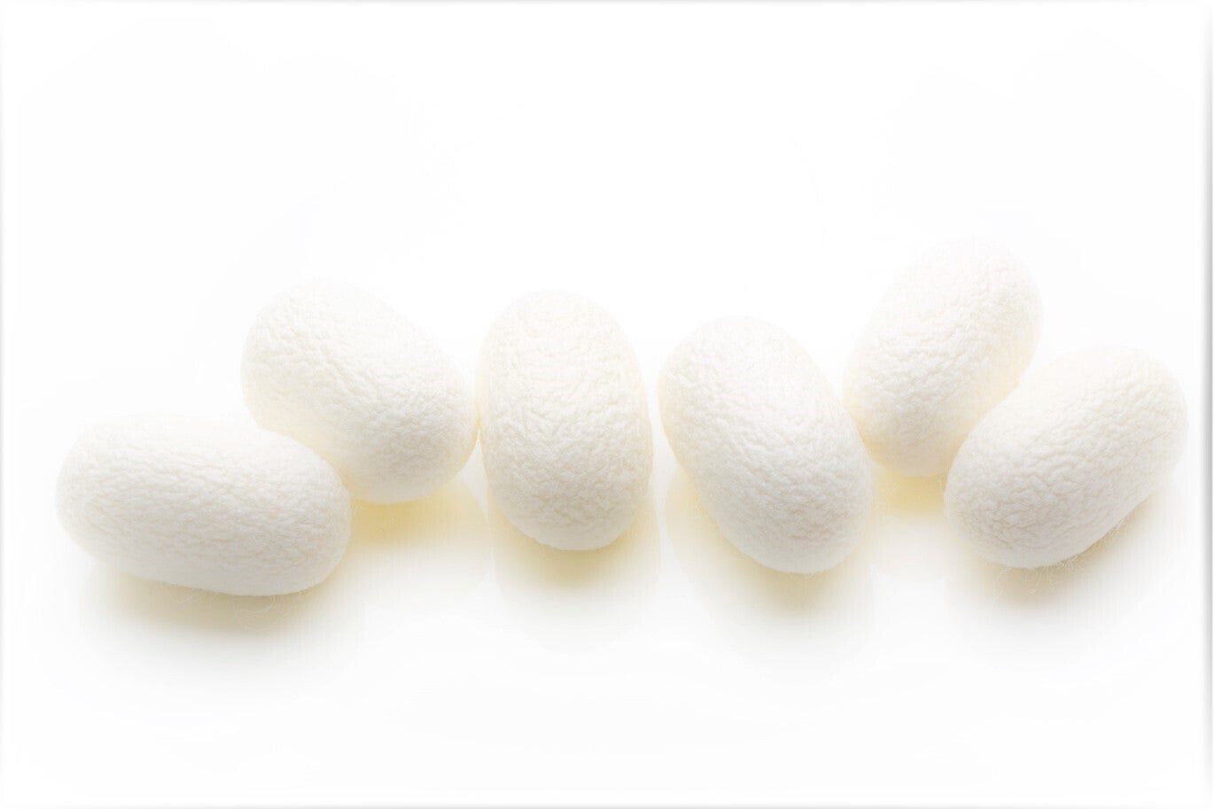 オーガニックローシルクの原材料メーカーの社長さんからこの話を聞いて、素晴らしい考え方と方法であると思いました。そして、その繭を非加熱で溶媒不使用でシルクにします。生体材料グレードの良質なシルクができ、一般的な加水分解シルクは加熱処理や溶剤で抽出されており、分子レベルで全く異なる別のものです。多くのシルクは、熱湯や溶剤に繭を入れてシルクにします。繭の中のカイコガは羽ばたかずして、その命を終えます。