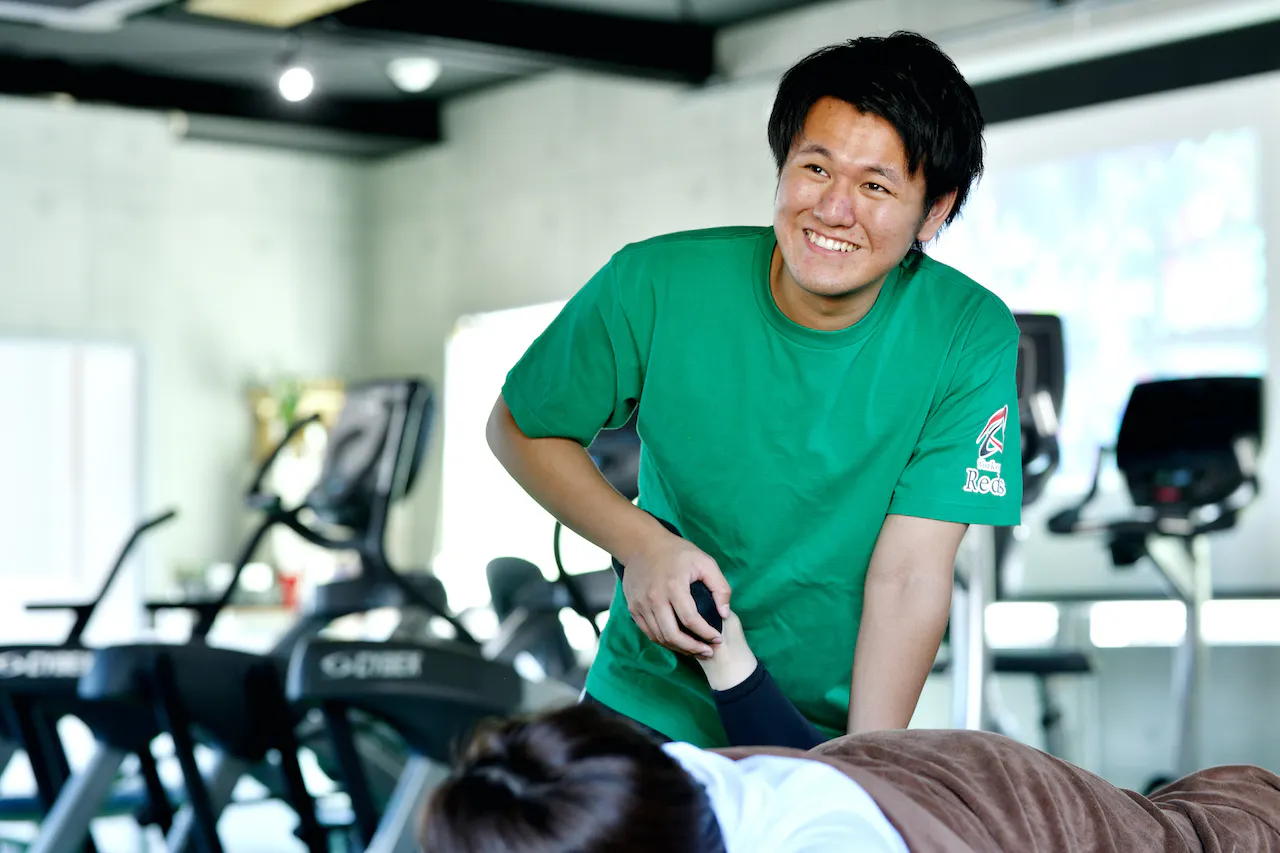 私は学生時代、怪我をしたことで最後の大会で背番号が下がるという悔しい経験をしました。それがきっかけとなって、今はこのジムで柔道整復師として働いています。怪我、痛み、不調などにより自分のやりたいことができなかったり、思いどおりに行かなかったり…過去の自分と同じような思いをする人を減らしたい。その思いでお客さまと向き合い続けています。
