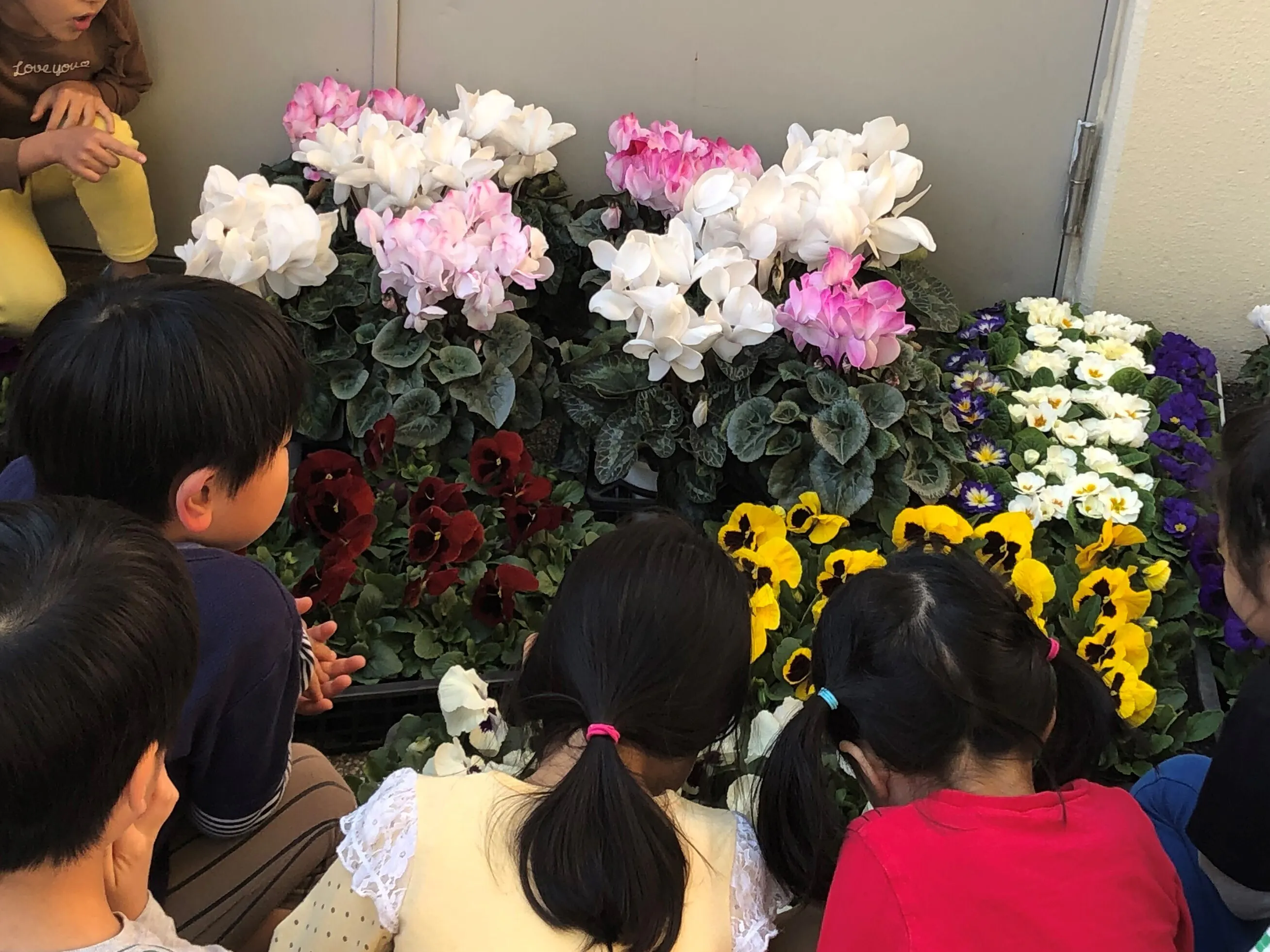園児たちは大喜びでお花を見つめていました。