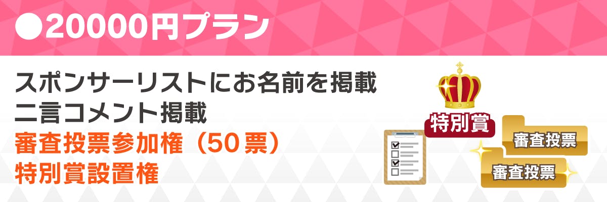 ・「20000円プラン」にてスポンサー特別賞の設置が行われます。
