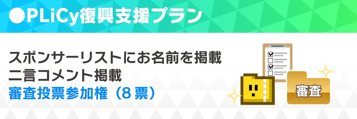 こちらのプラン参加のみ、ご支援金がPLiCyの復興(サーバー調整費用等)に使用されます。