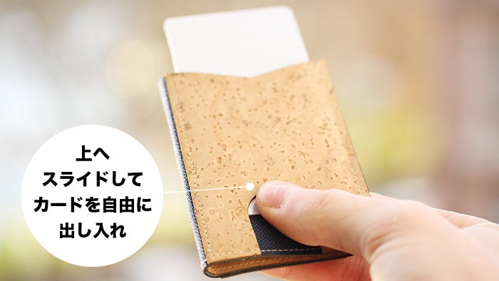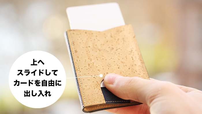 5秒で取り出し可能!利便性を最大限まで高めた使い勝手の良い収納。 カード中央に親指を当て、スライドさせるだけでカードを自在に出し入れできるカスケードタイプです。