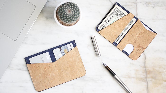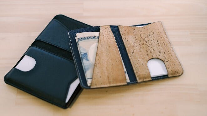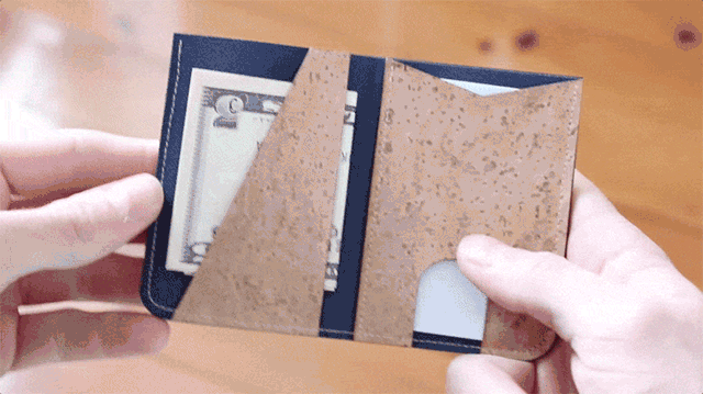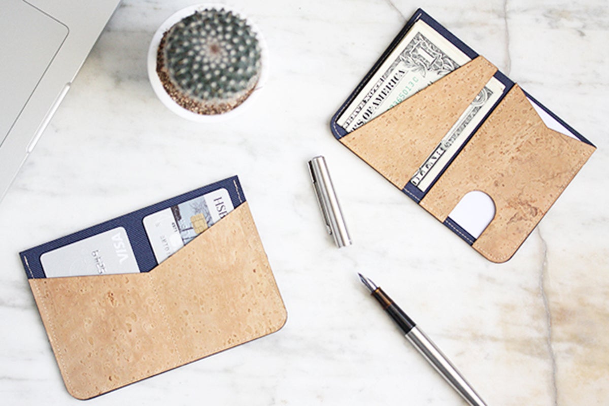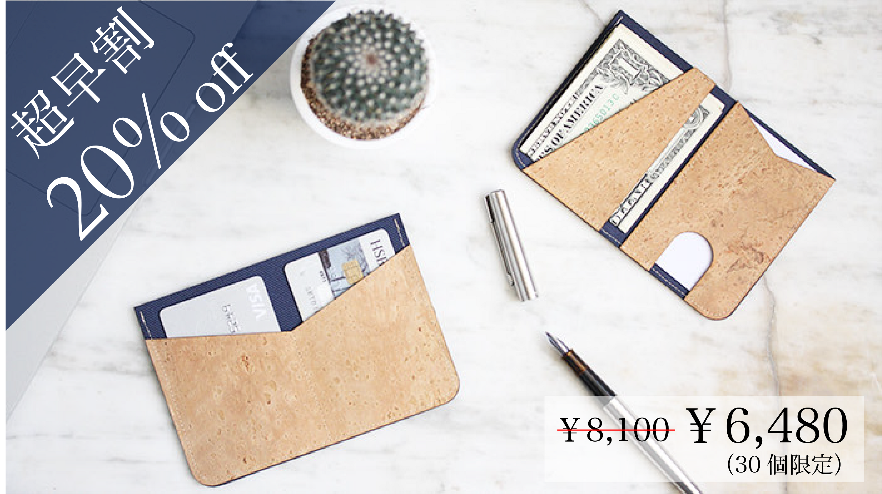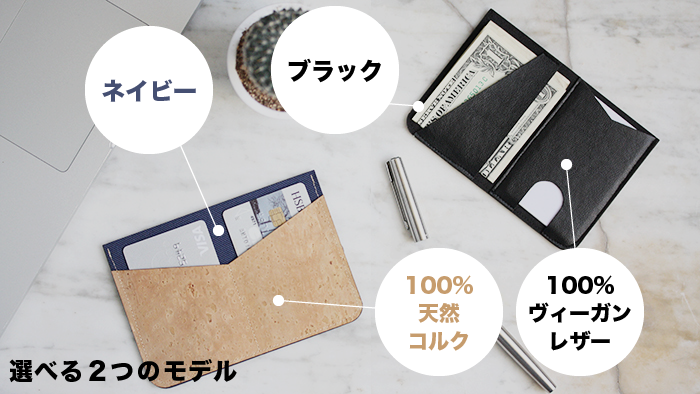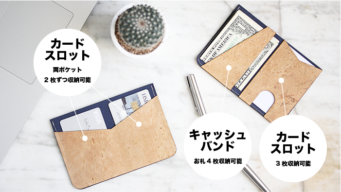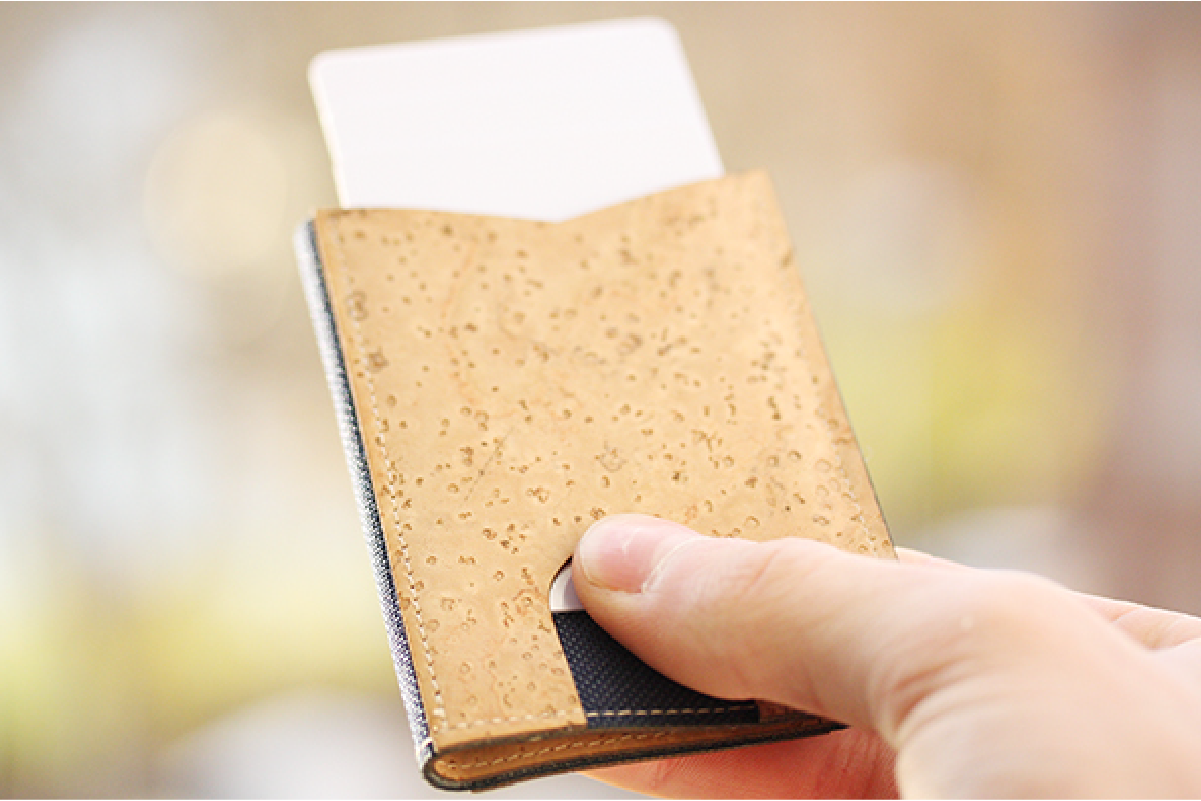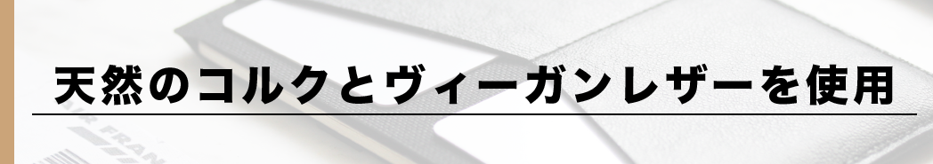 環境汚染・動物愛護などの着点からも注目されている「天然コルク」と「ヴィーガンレザー」を使用しており、ポリシーだけではなく「丈夫で軽く水に強い」その特徴から財布の素材にはとても適しています。