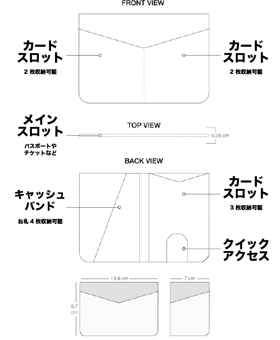 限りなく薄く作られたデザインにより、大きな荷物を持ち歩きたくない海外旅行での活躍はもちろん、ポケットに財布を入れて持ち運ぶ際に財布が目立たずスリなどの犯罪に巻き込まれる心配もなくなります。