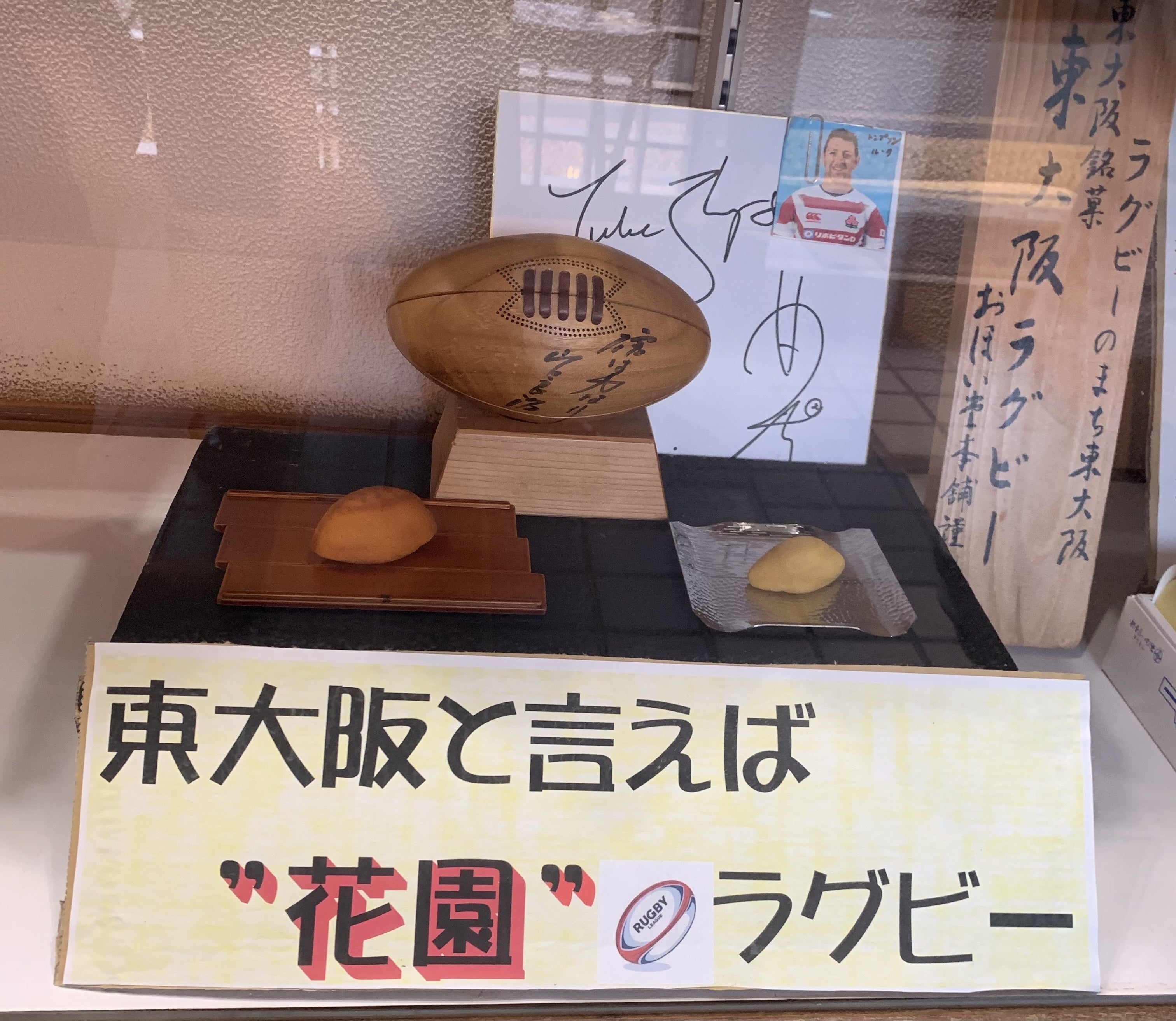 おほい堂がある東大阪市は、有名なラグビーの聖地『花園ラグビー場』もあり、様々な方がふいに訪れます。店内にはオリンピック4大会全てに出場し、2019年のラグビーワールドカップでも活躍したトンプソン・ルーク選手のサインも置かせて頂いております。本当にありがたいことに、テレビ、新聞の取材も定期的に頂いております。